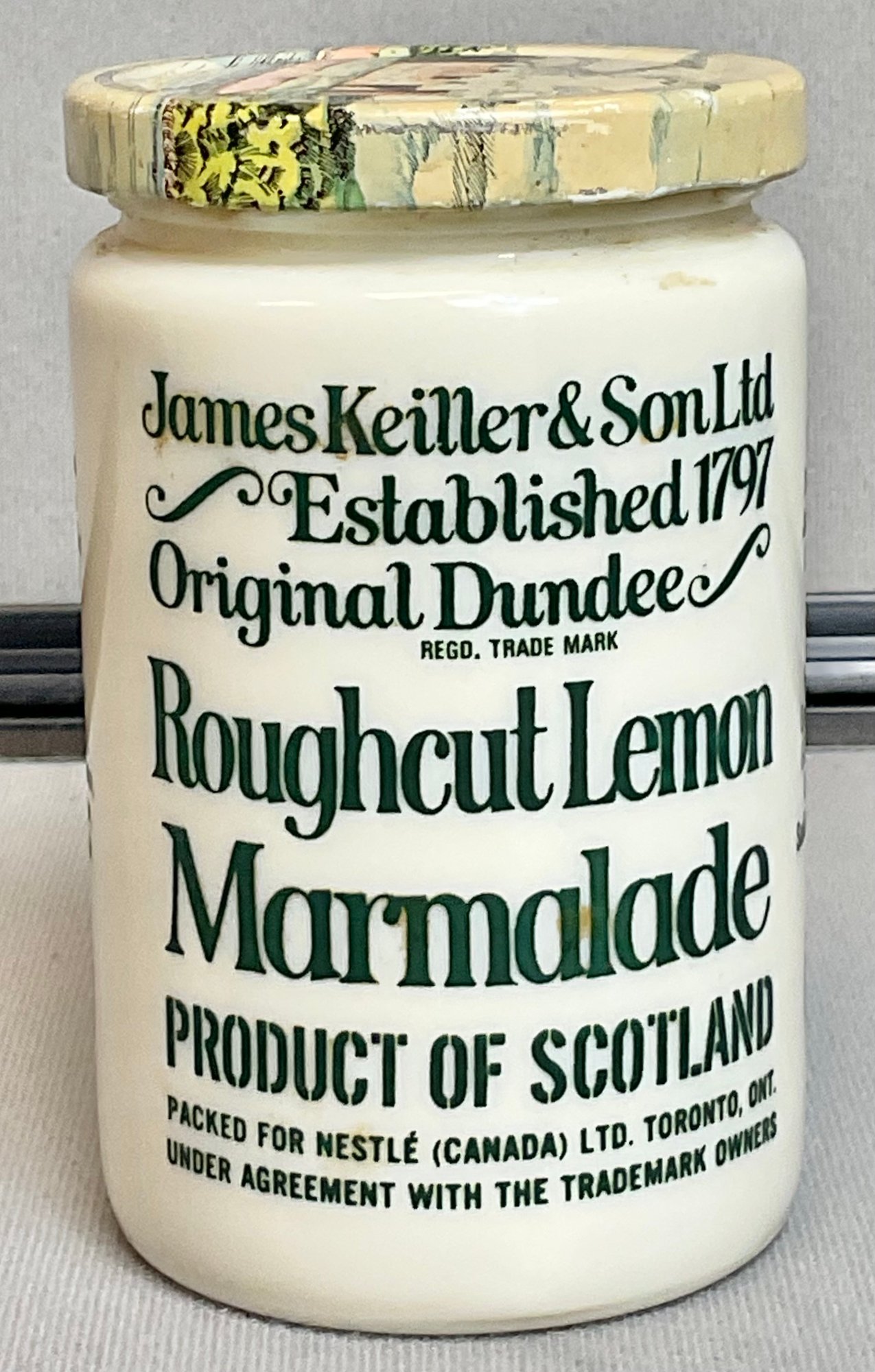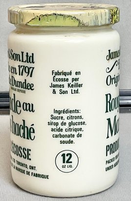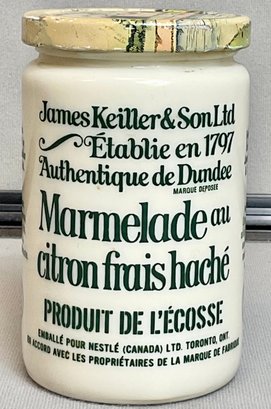 James Keiller & Son Milk Glass Marmalade Jar - 4.75” tall x 2 7/8” wide - good used condition