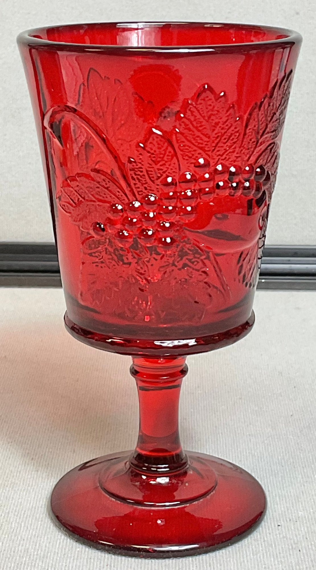L. G. Wright Strawberry & Currant Ruby Red Goblet - no chips - 6.5” tall x 3.5” wide - good used condition