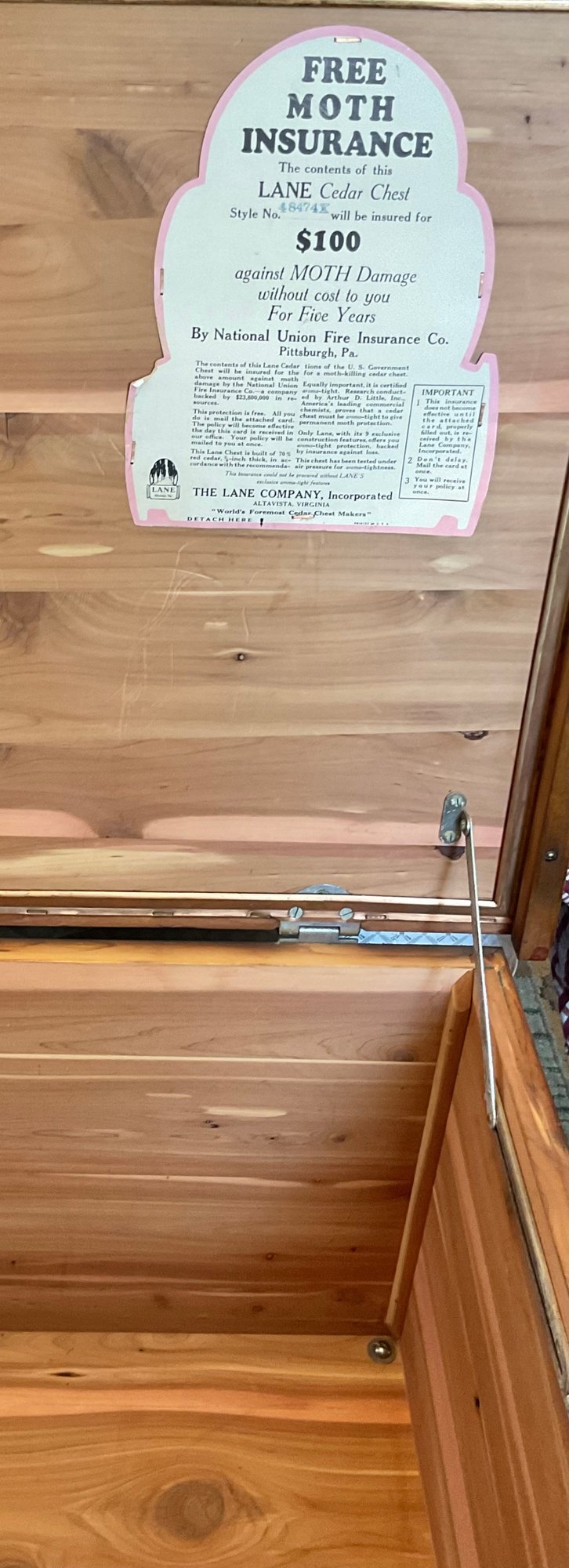 Lane Cedar Chest - 20.5” tall x 48” long x 19” wide- good used condition.