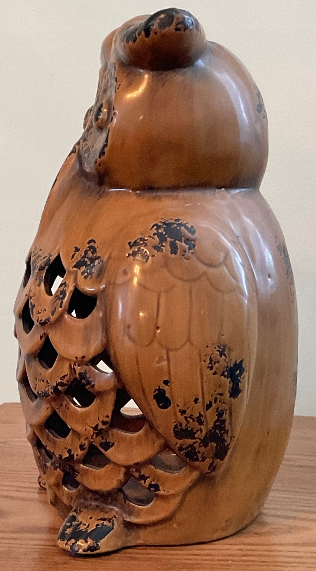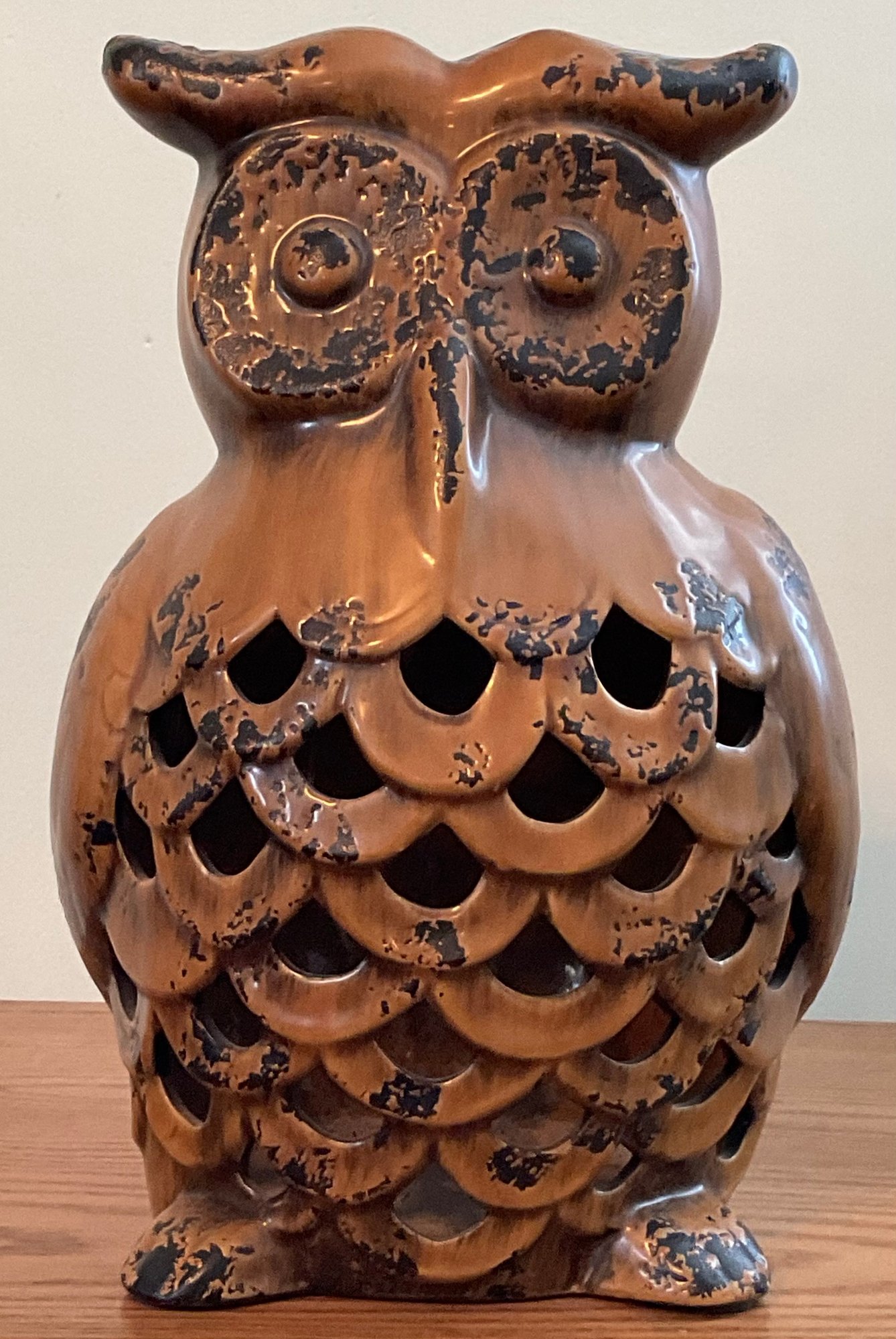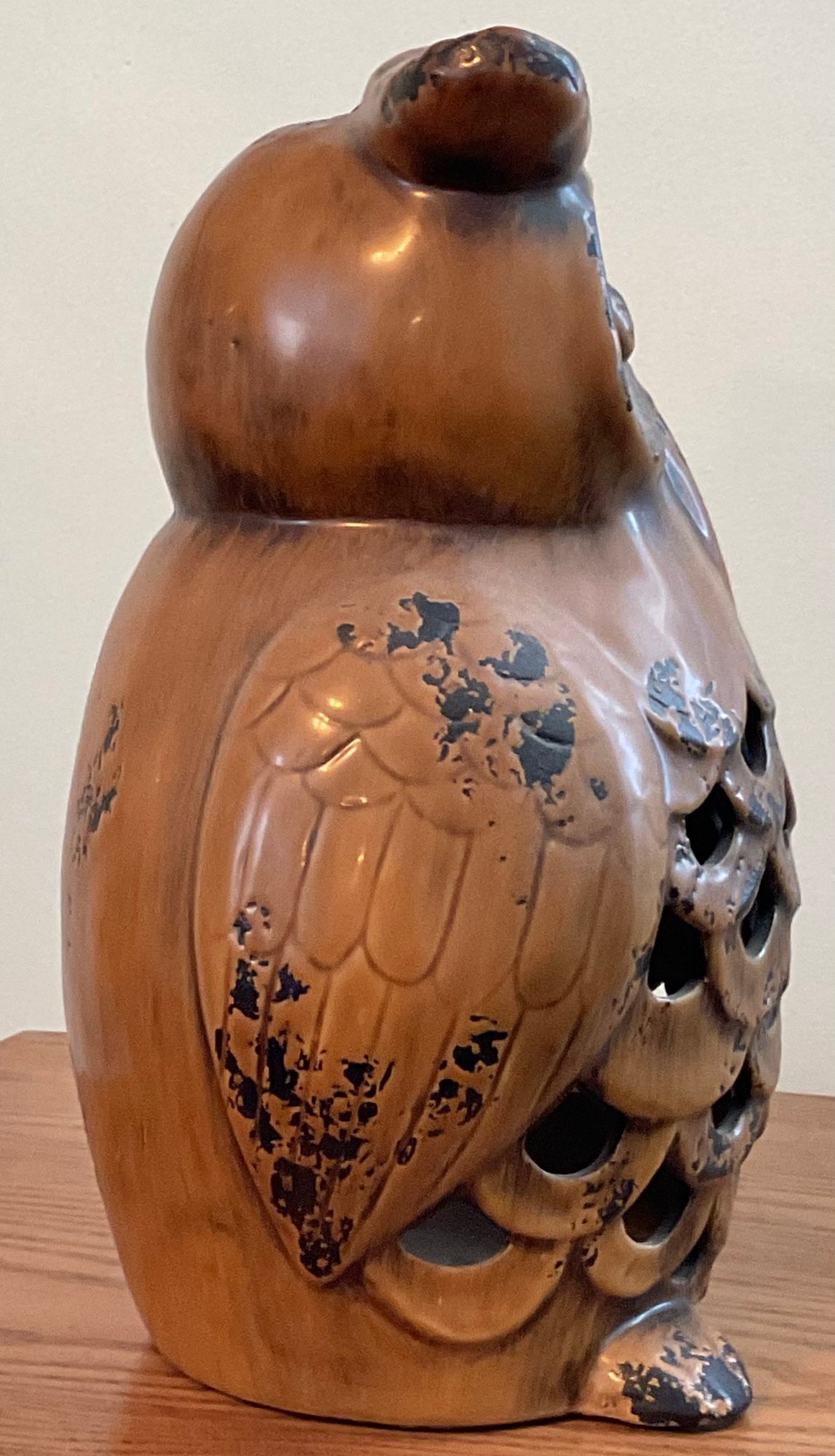 Large Ceramic Owl Tea Light Holder - no chips - 12.5” tall x 8” long x 7” wide - good used condition