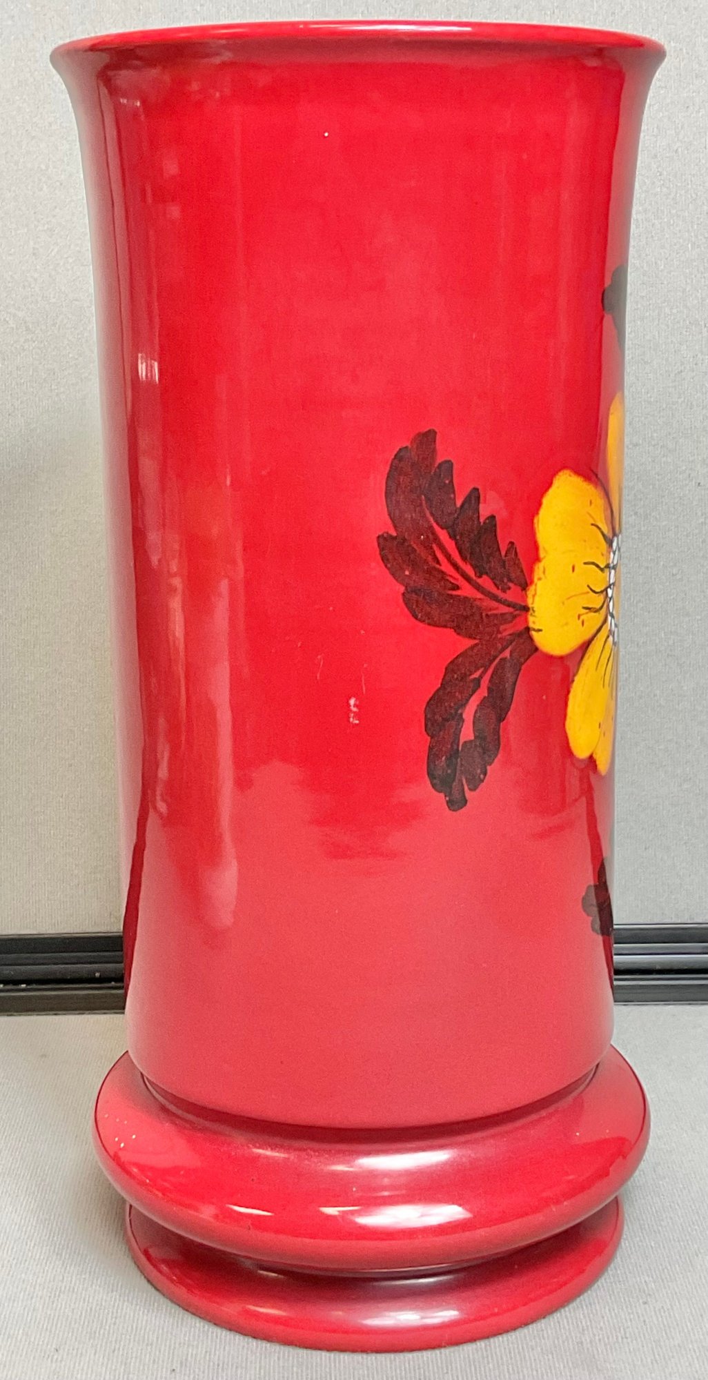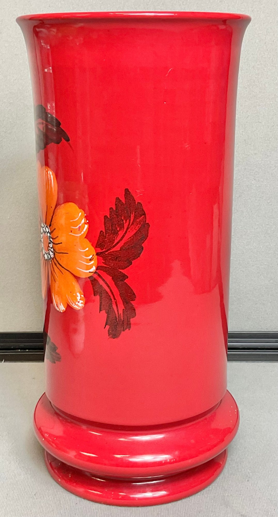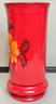 Large Red Ceramic Mid Century Floral Vase - no chips - 12” tall x 5.5” wide - good used condition