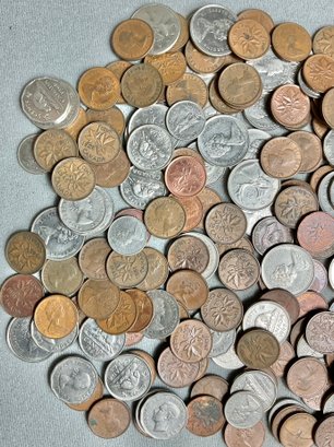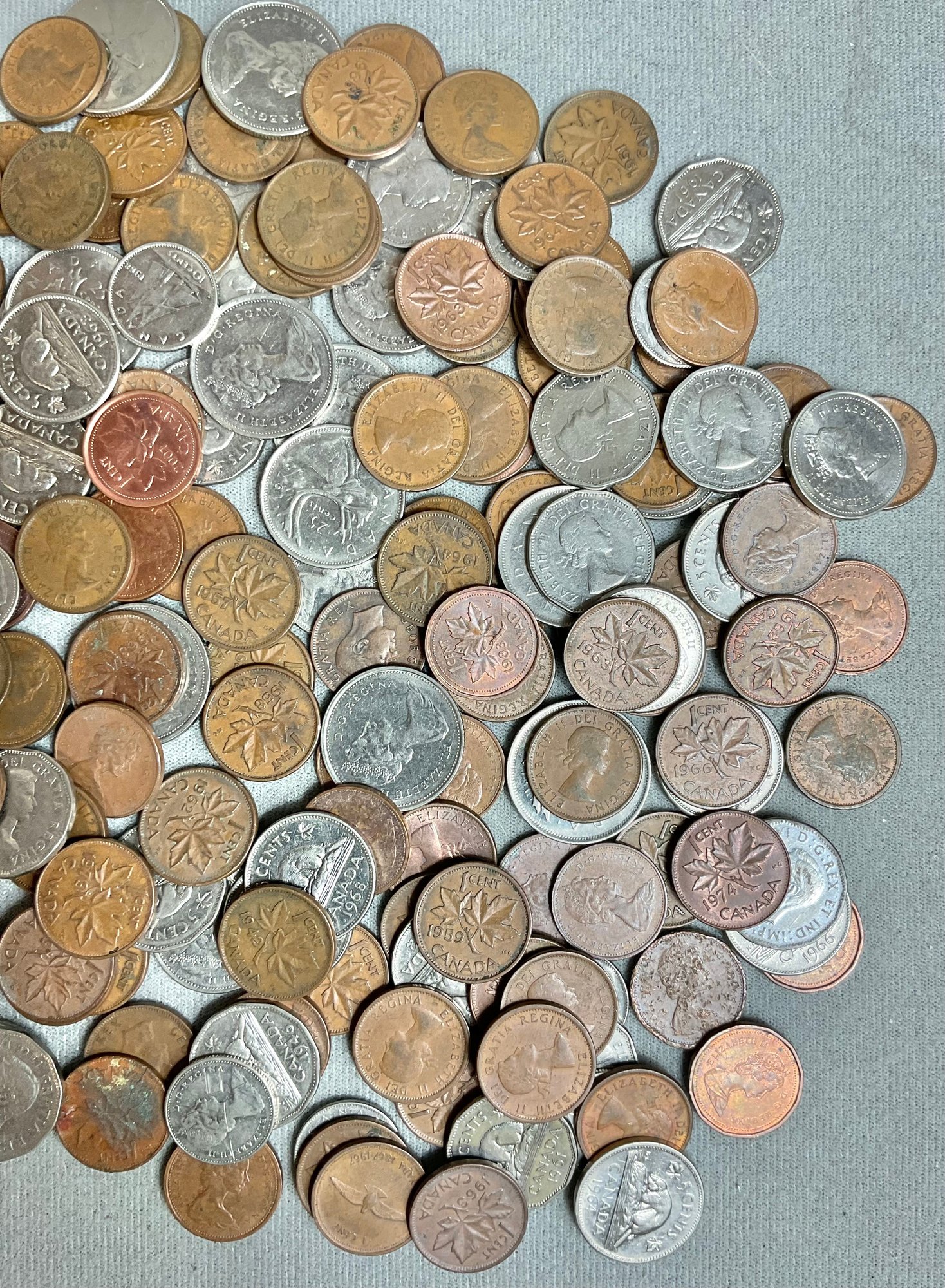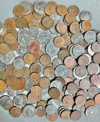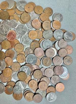 Large Vintage Assortment Canadian Change - pennies, dimes, nickels, quarters - good used condition