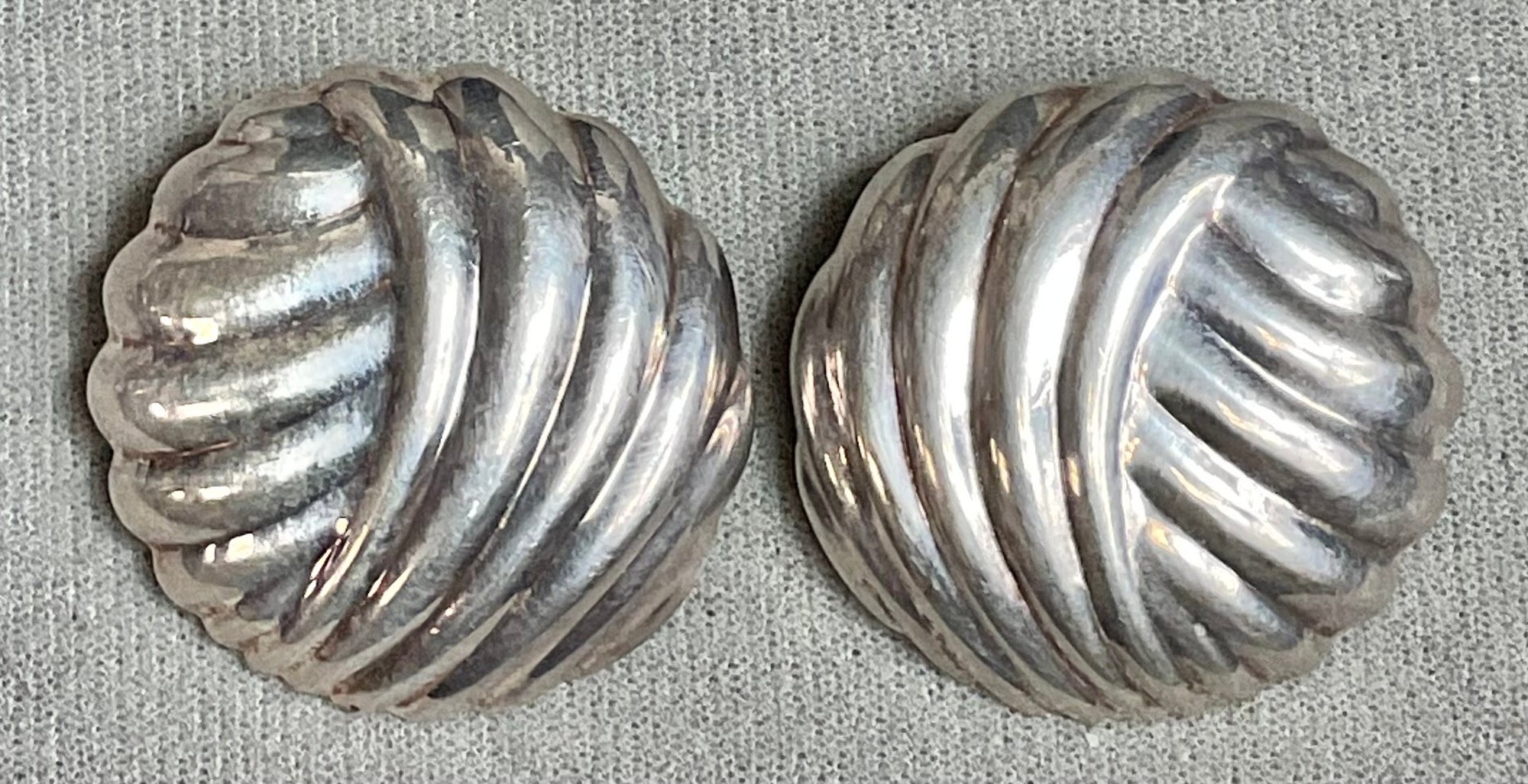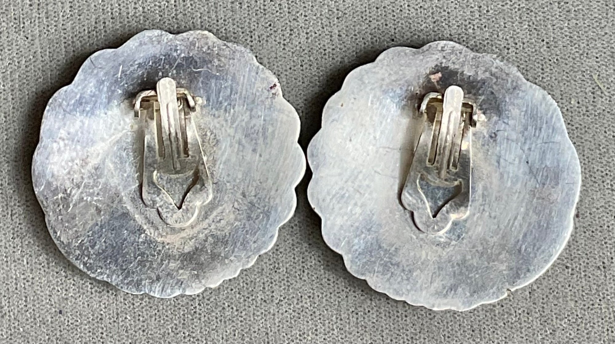 Large Vintage Italy Sterling Clip On Earrings - 1 3/8” round - weighs 17.7 grams - good used condition