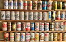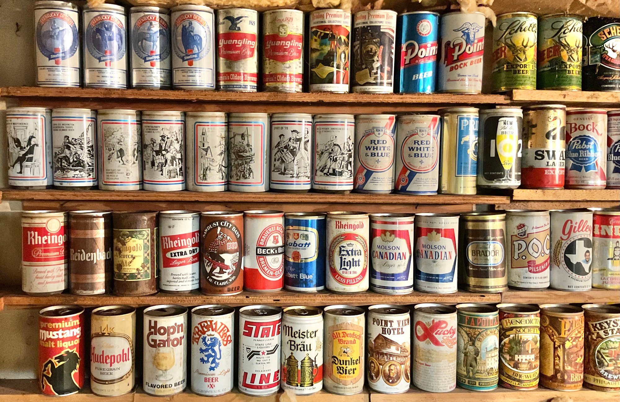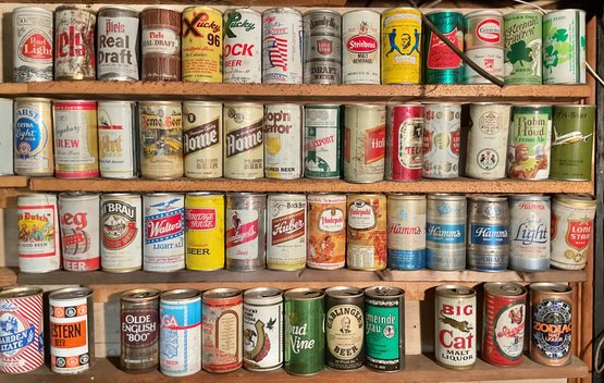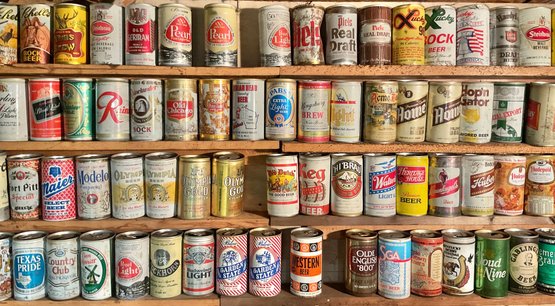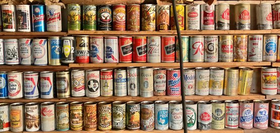 Large Wall Full Vintage Beer Cans - nice assortment - flat tops - as found - good used condition