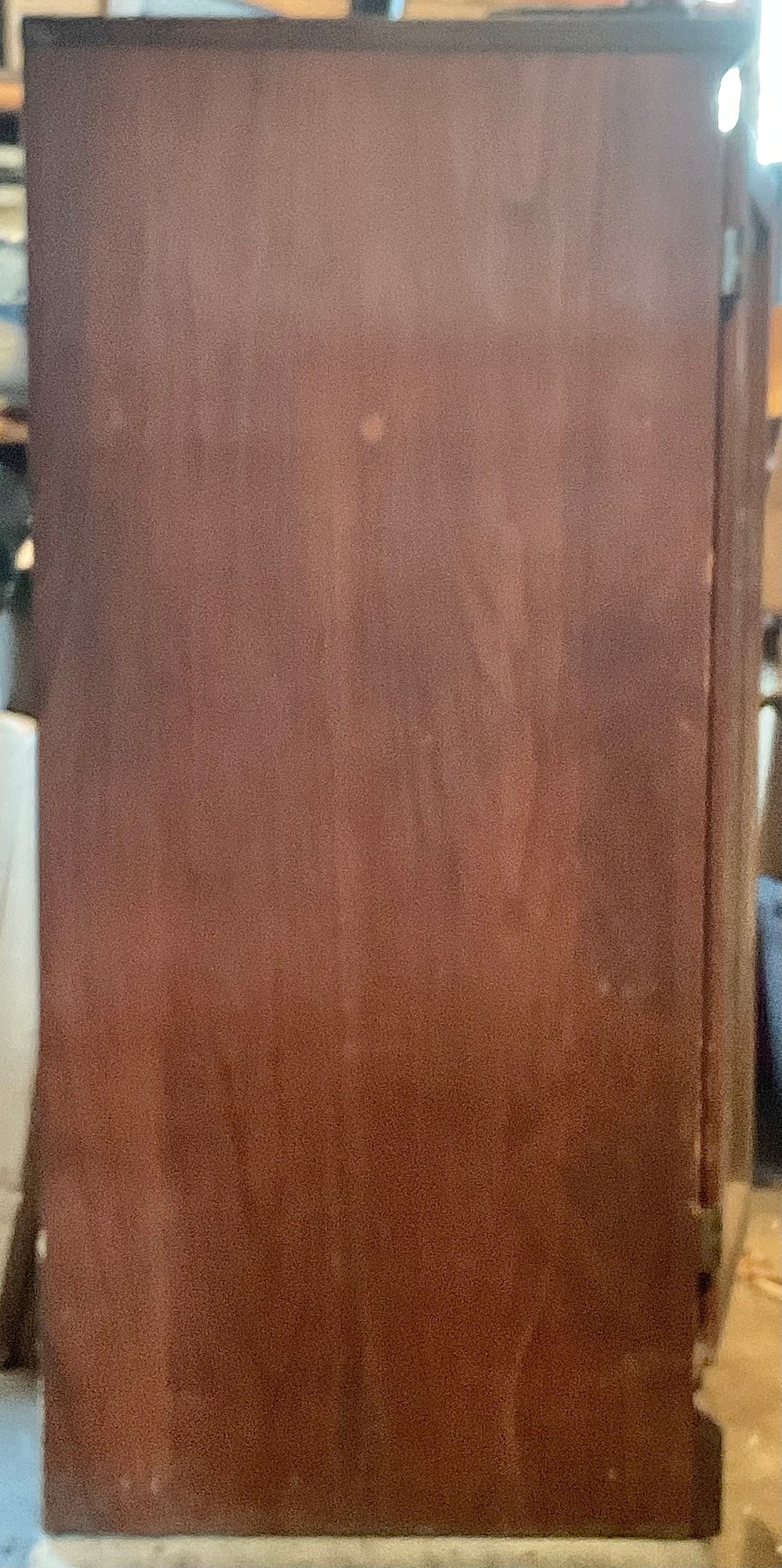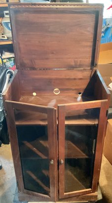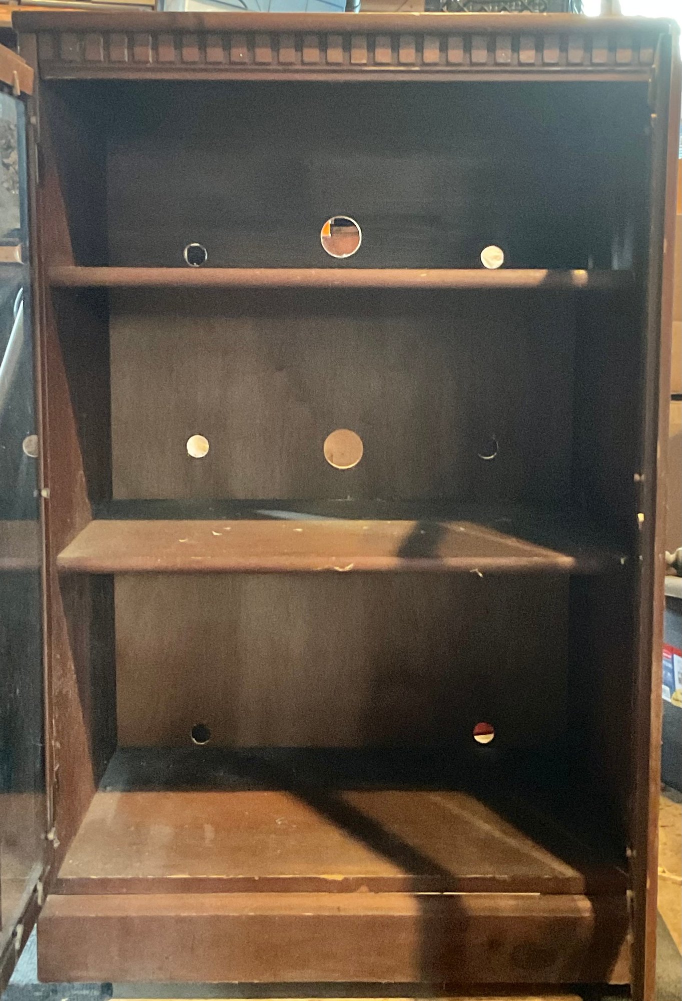 Glass Door Stereo Cabinet - top flips up - 39.5” tall x 25 5/8” long x 18 1/8” wide - good used condition