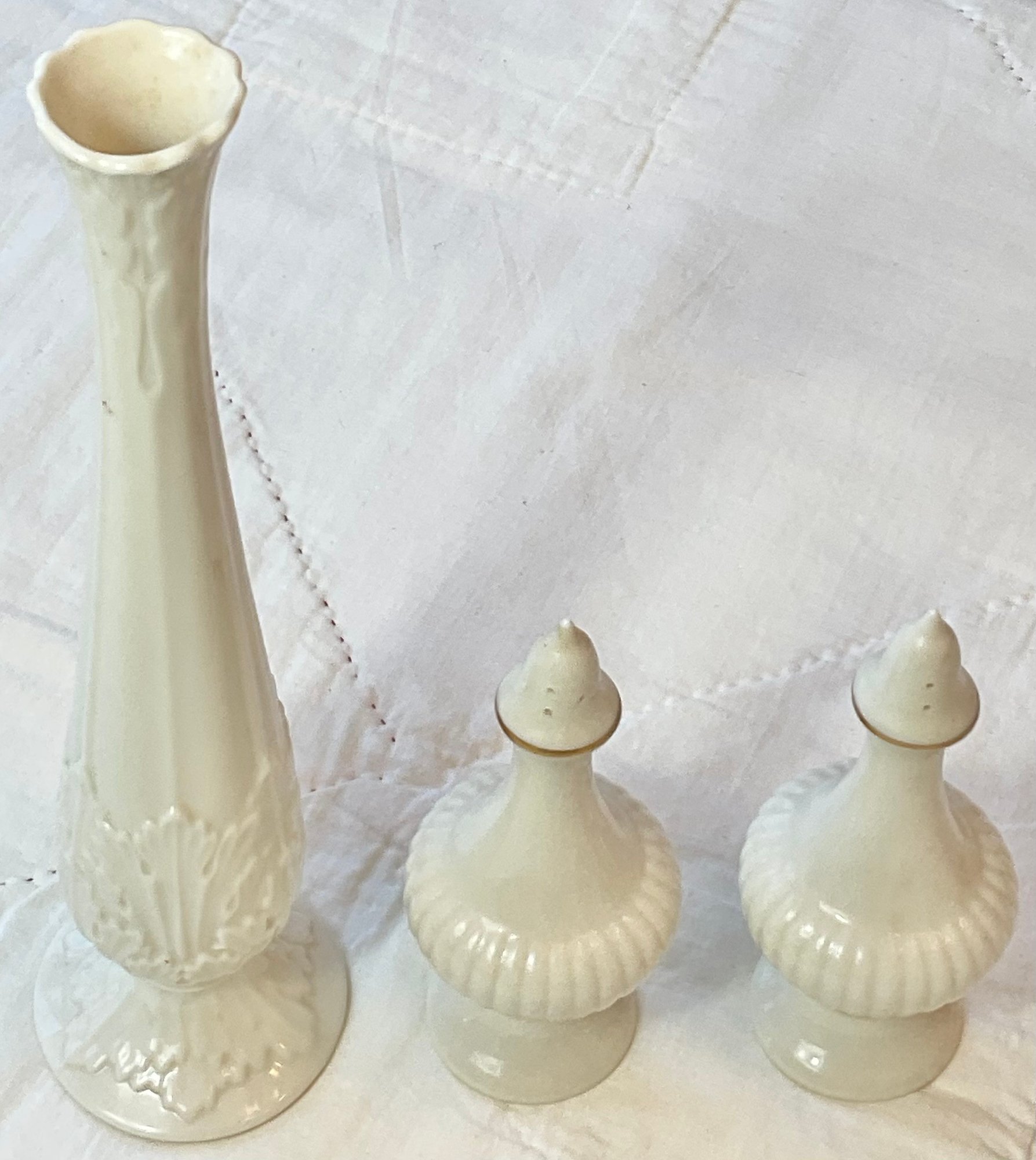 Lenox Bud Vase & Salt/Pepper Shakers - Made USA - no chips - vase 10.75” - salt/pepper 5.75” - good used condition
