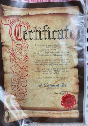 Limited Edition Lissi Doll - Lacey - only 1000 made - 1993 - vinyl - 21” tall - good used condition