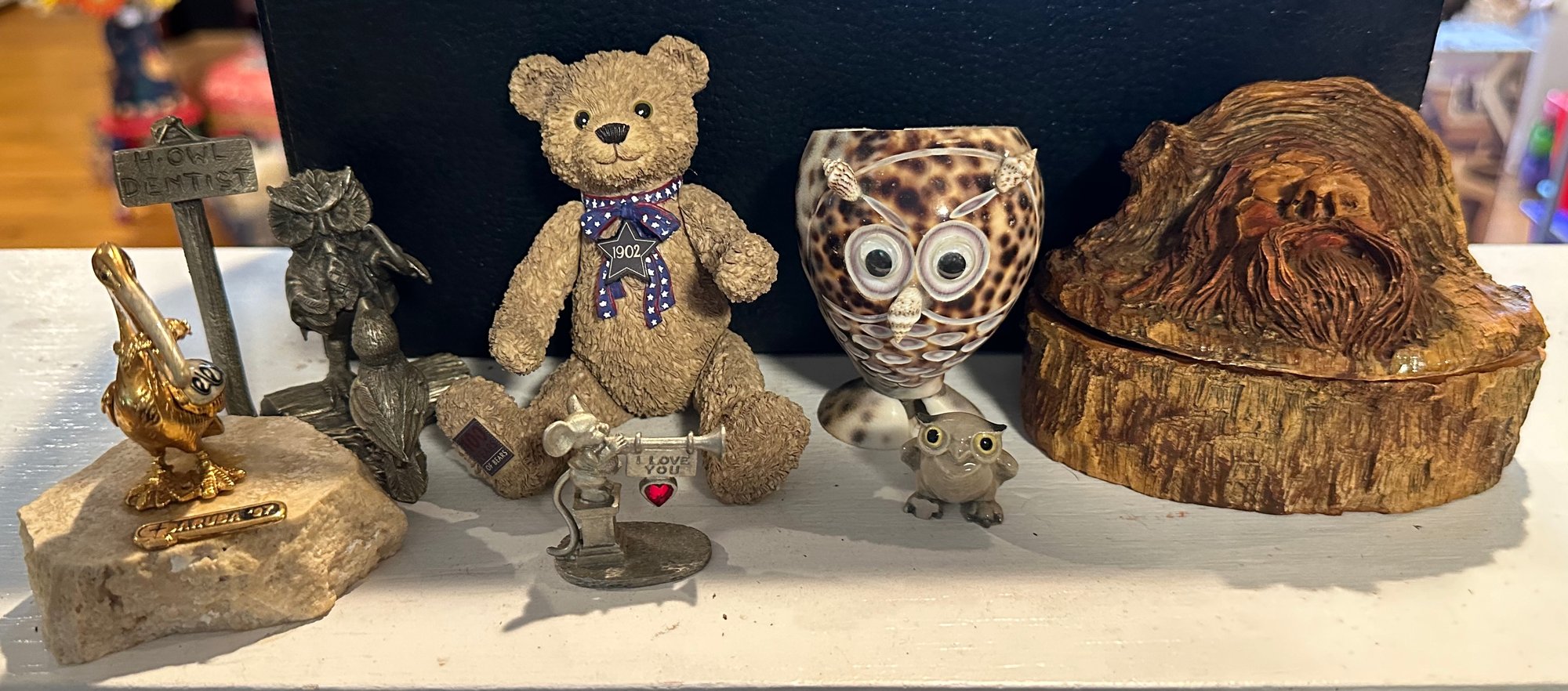 Lot Of 7 Miscellaneous Animal Figures - pewter, shell, plastic, ceramic, boyd bear, etc. - good used condition