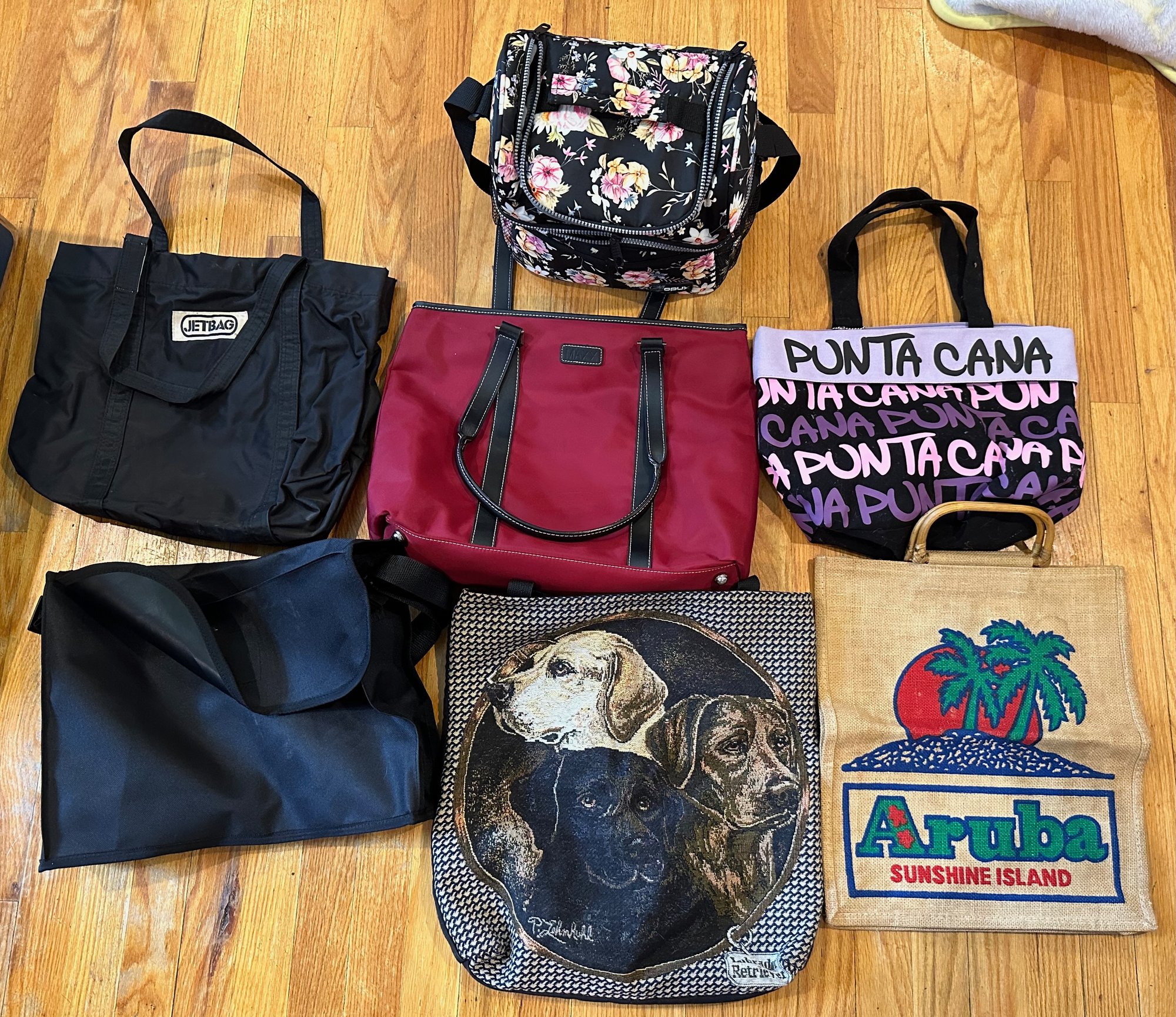 Lot Of 7 Tote Bags & Lunch Bag - as found - good used condition