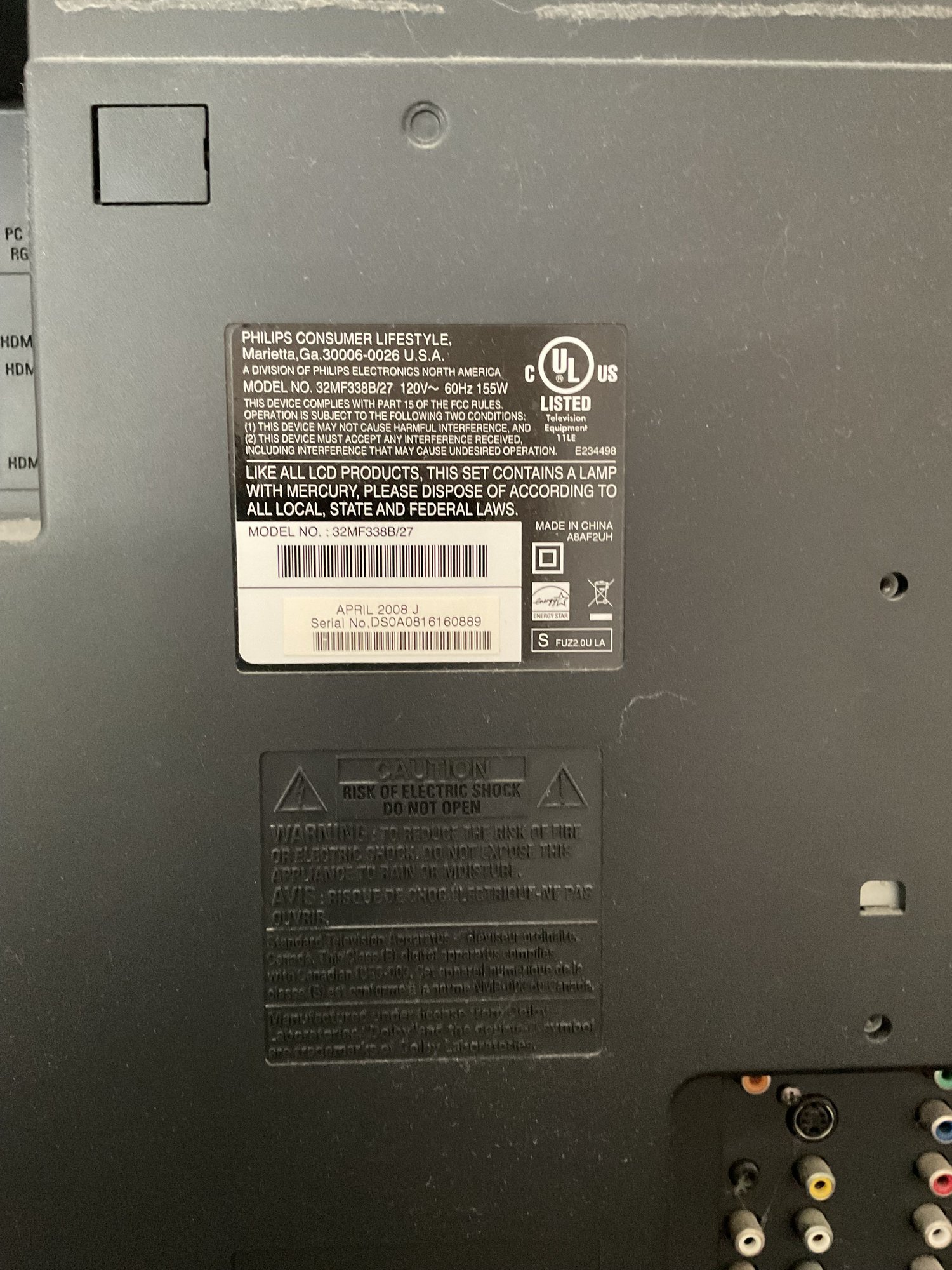 Magnavox 32in LCD TV - model 32MF338B/27 - works - looking for remote - good used condition