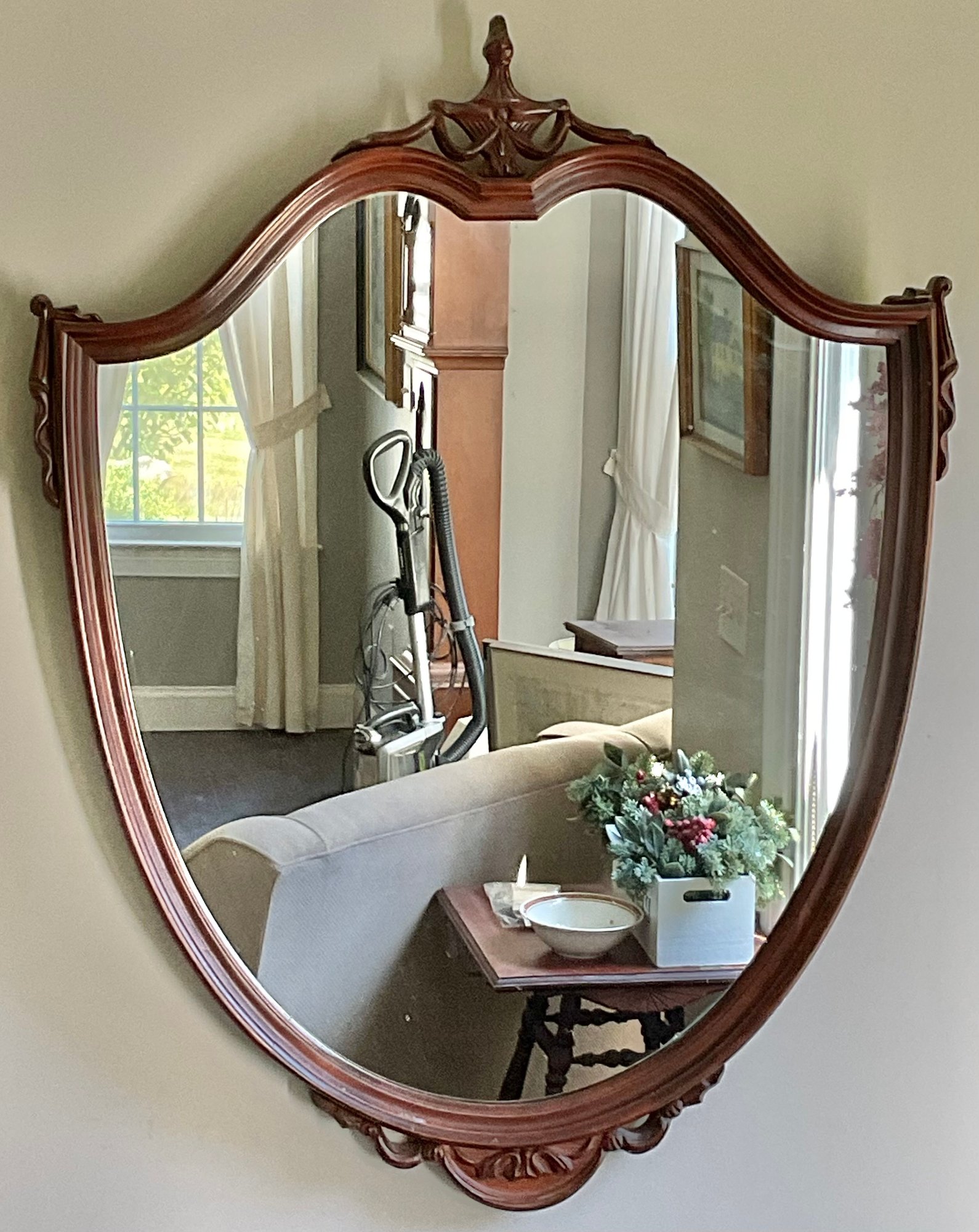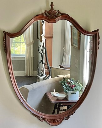 Mahogany Shield Wall Mirror - 37.75” tall x 29” wide - good used condition