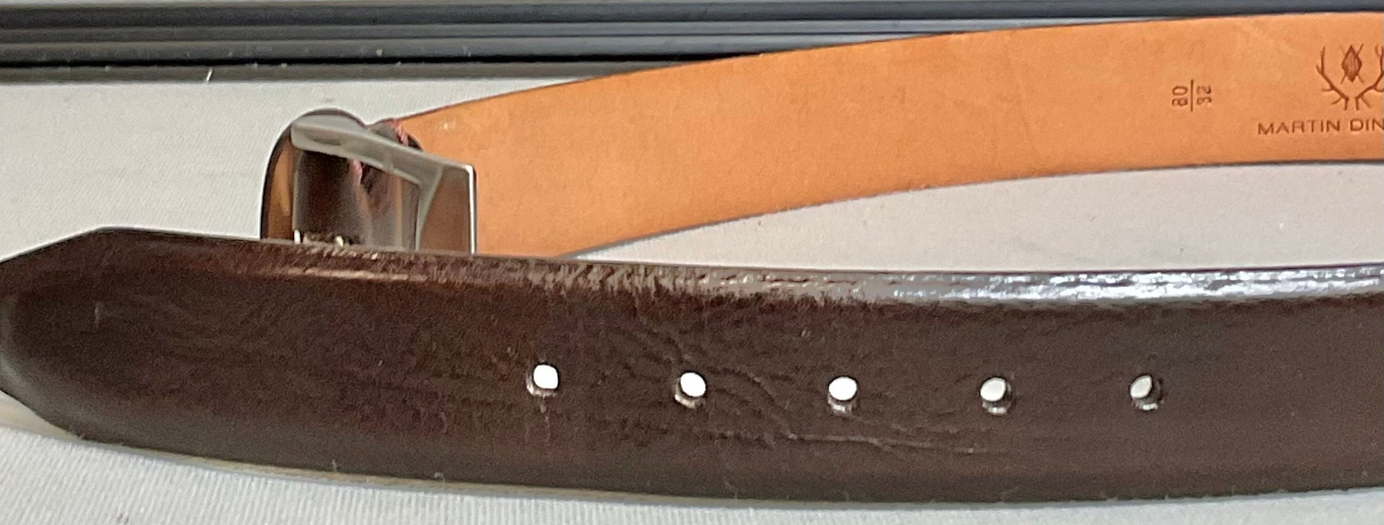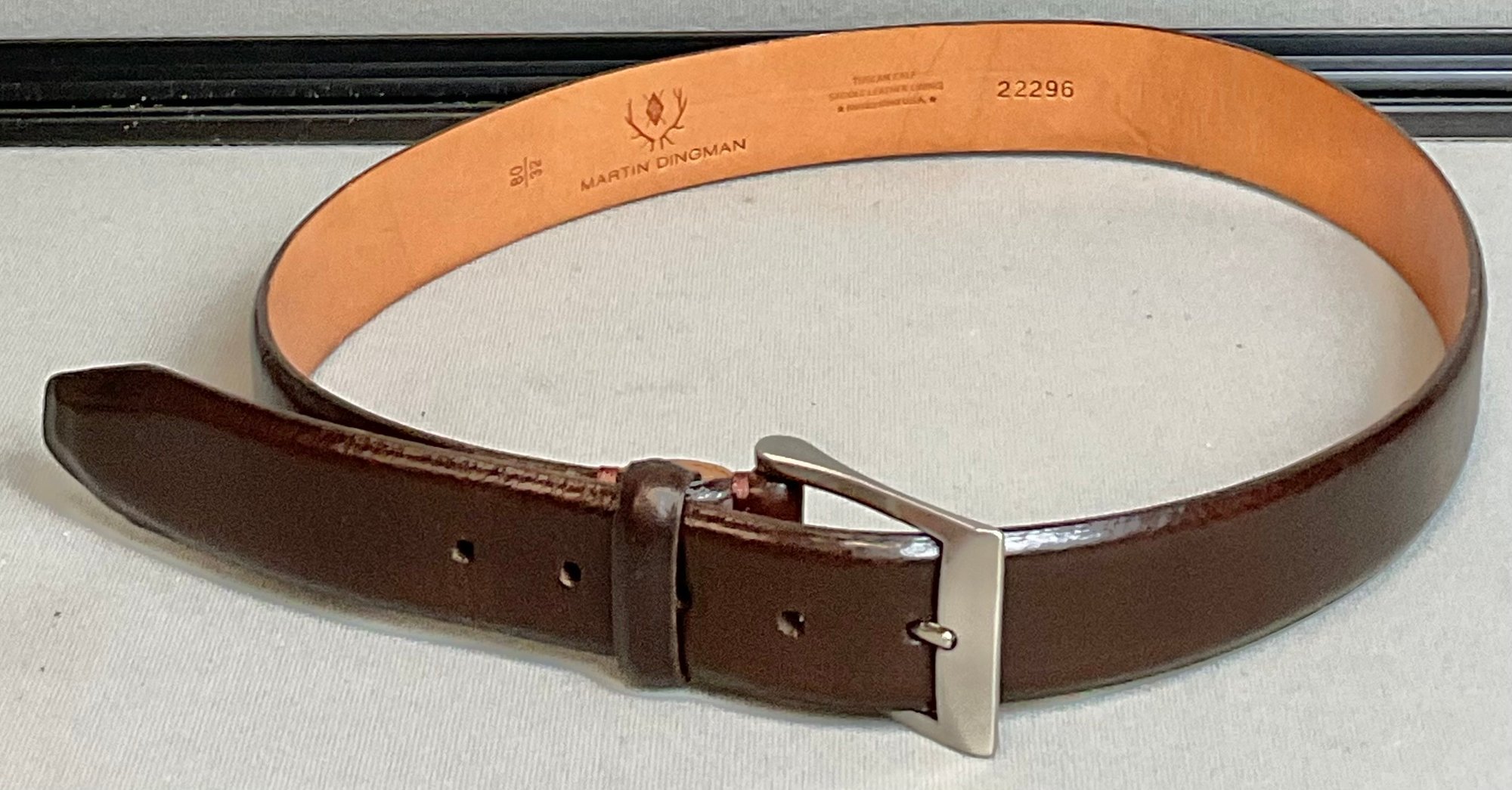 Martin Dingman Brown Tuscan Calf Leather Belt - size 32 -made in Italy- looks unused