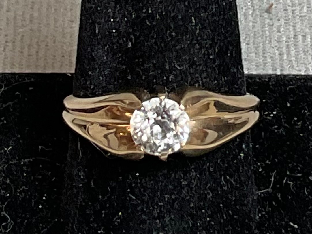 Mens 14k Gold Ring W/ Clear Stone - size 10.75 - weighs 5.8 grams - good used condition