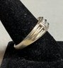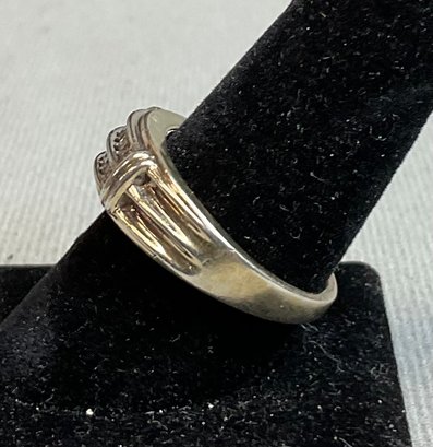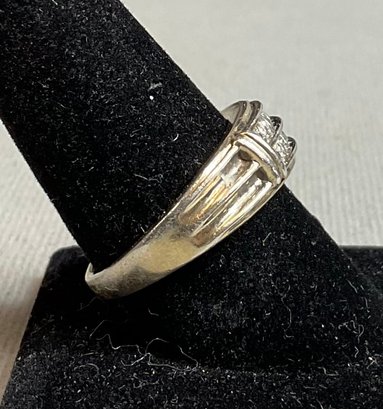 Mens Sterling & Diamond Wedding Band/ Ring - diamonds tested - size 10.25 - weighs 6 grams - good used condition