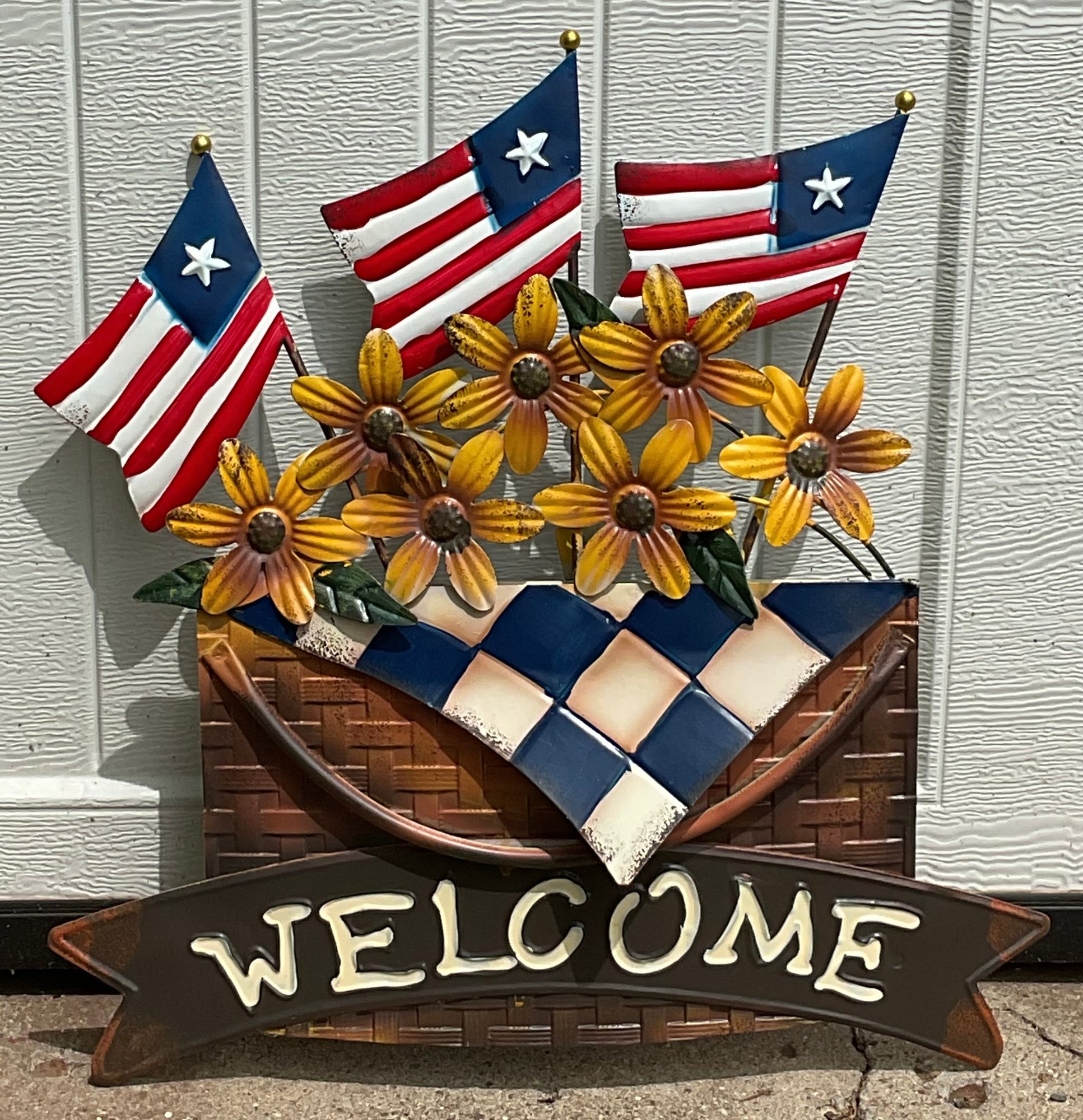 Metal Hanging Welcome Sign - 17” x 16” - good used condition