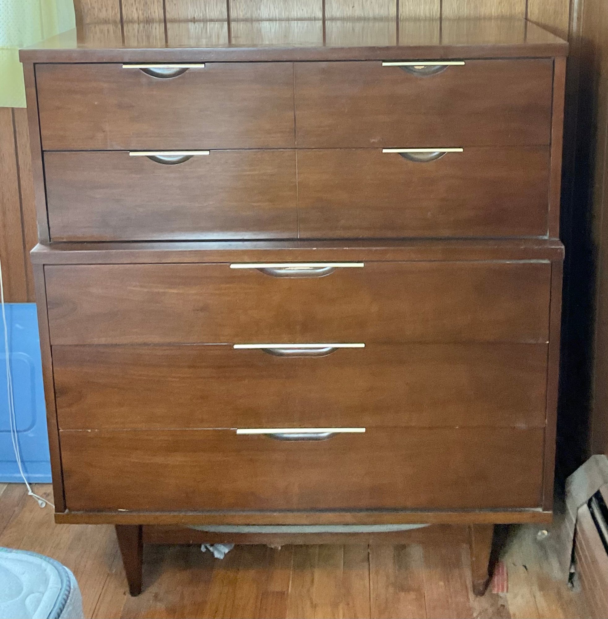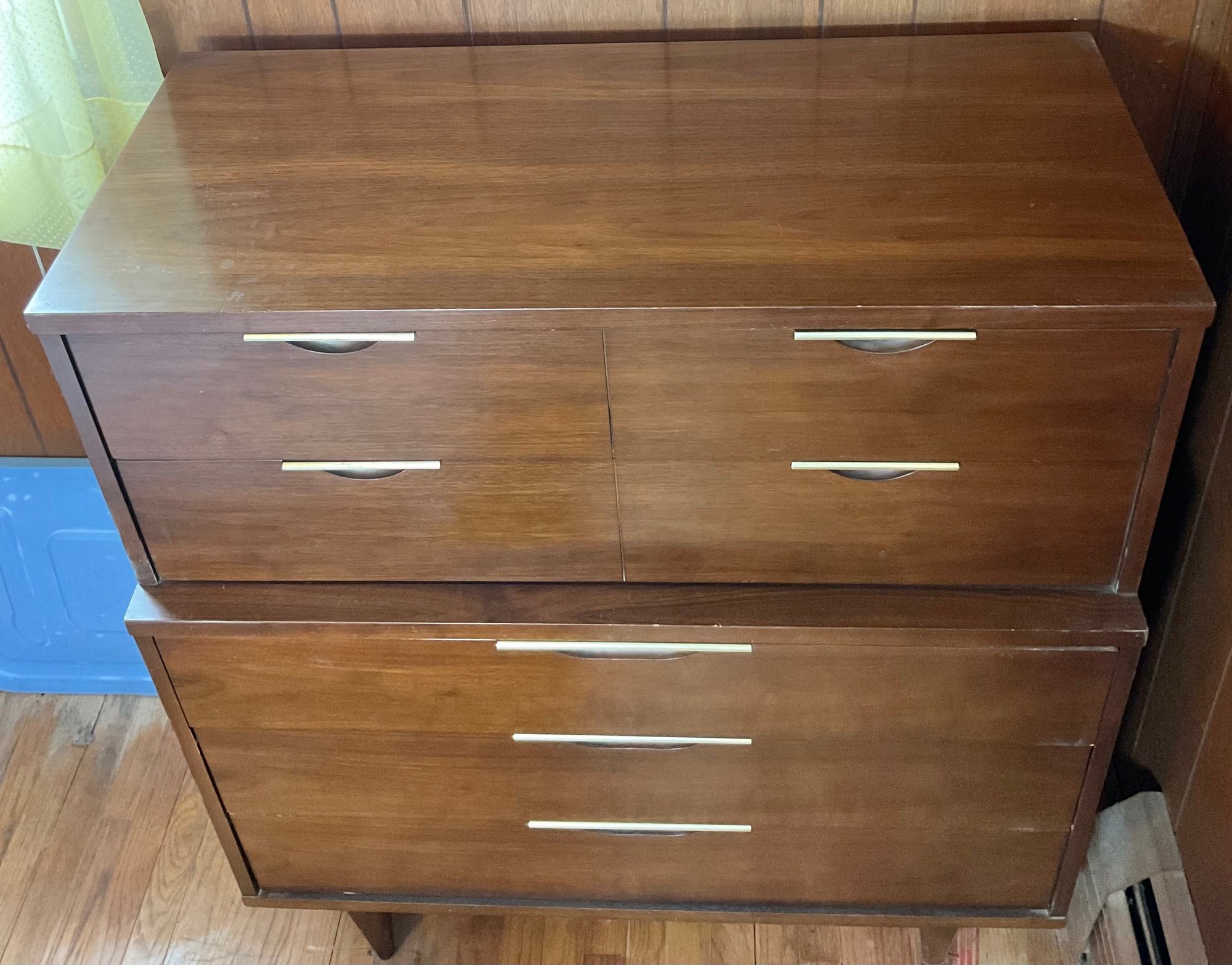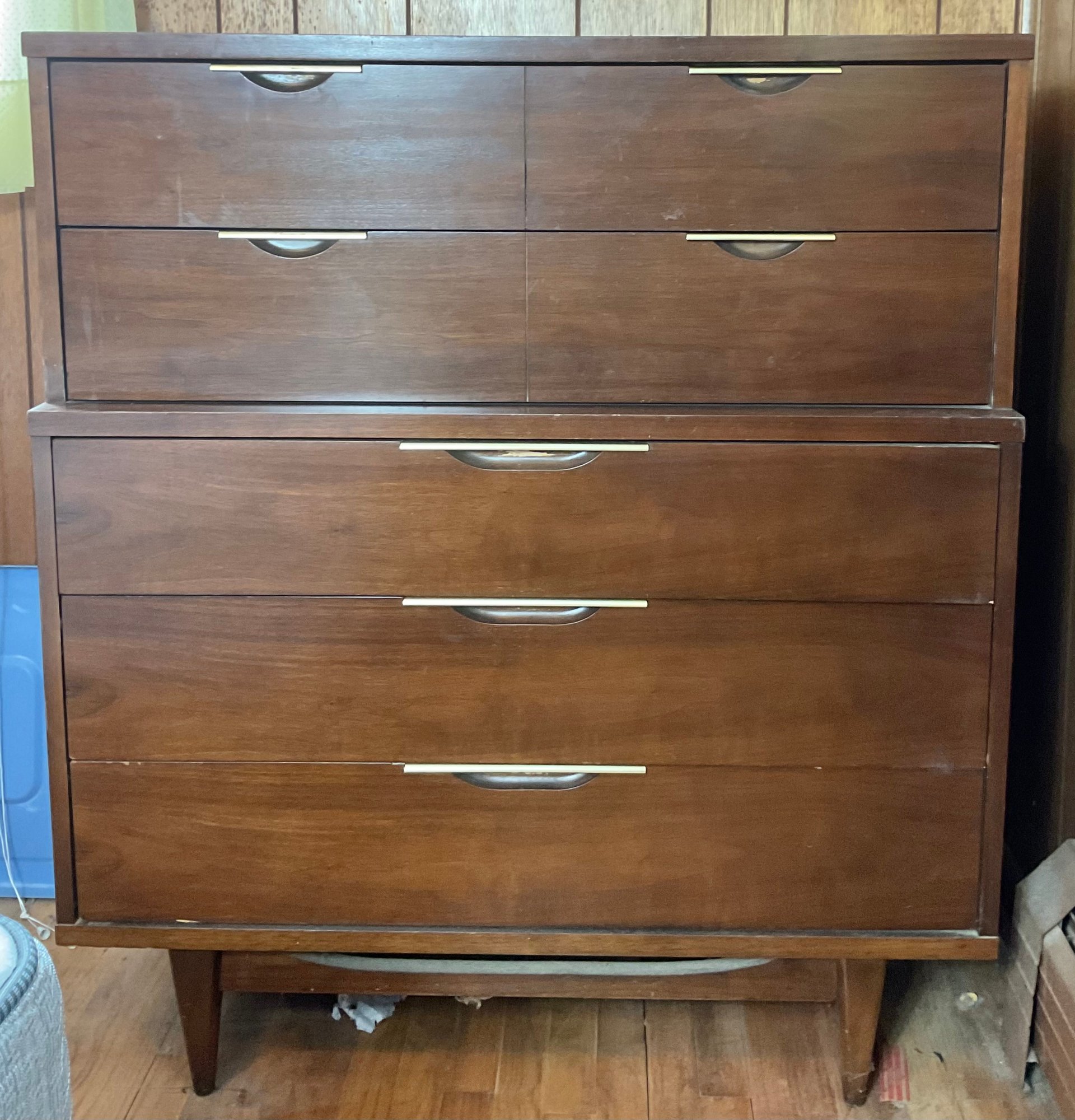 Mid Century Kent Coffey Tableau Dresser - walnut - 46” tall x 40” long x 19” wide - good used condition