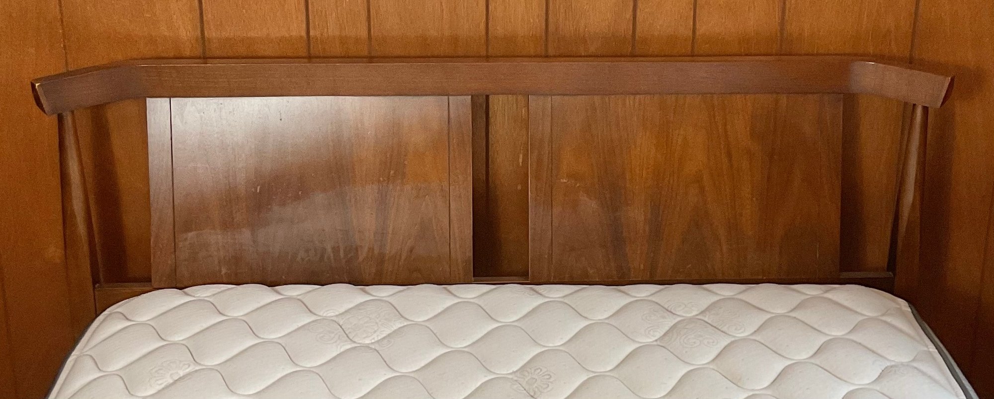 Mid Century Kent Coffey Tableau Full Size Bed Frame - walnut - headboard 38” tall x 58” long - good used condition