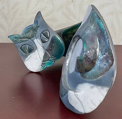 Mid Century Raku Pottery Abstract Cat - no chips - 3.75” tall x 6.75” long x 4” wide - good used condition