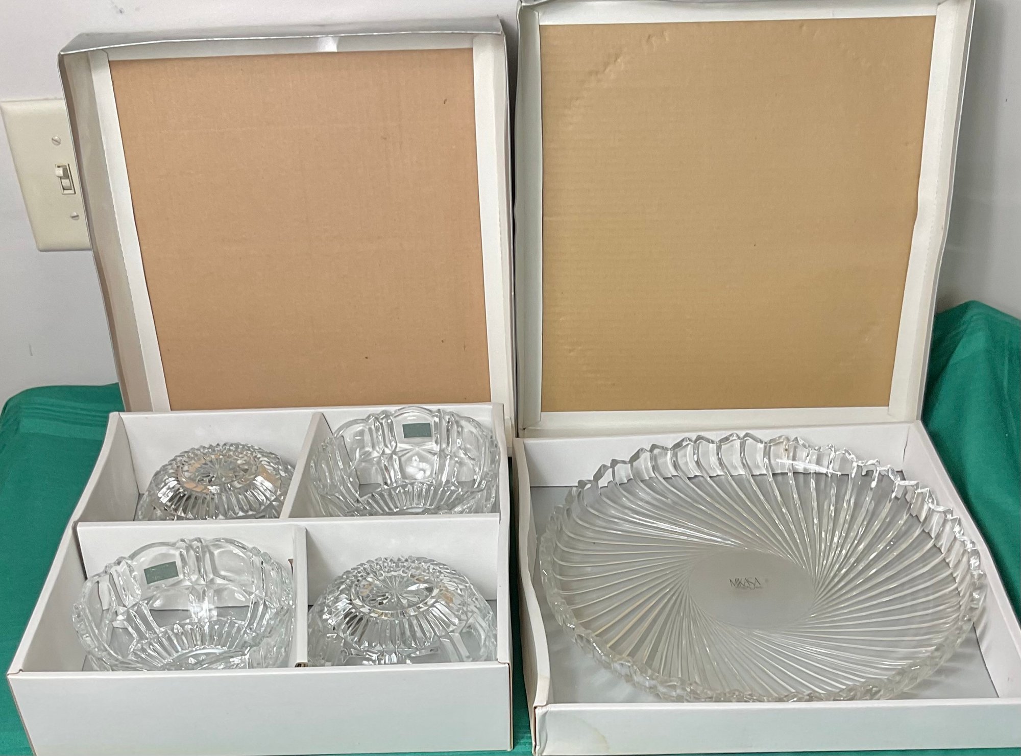Mikasa Crystal Serving Platter & 4 Bowls - New - platter 12” - bowls 2.75” tall x 5.5” wide