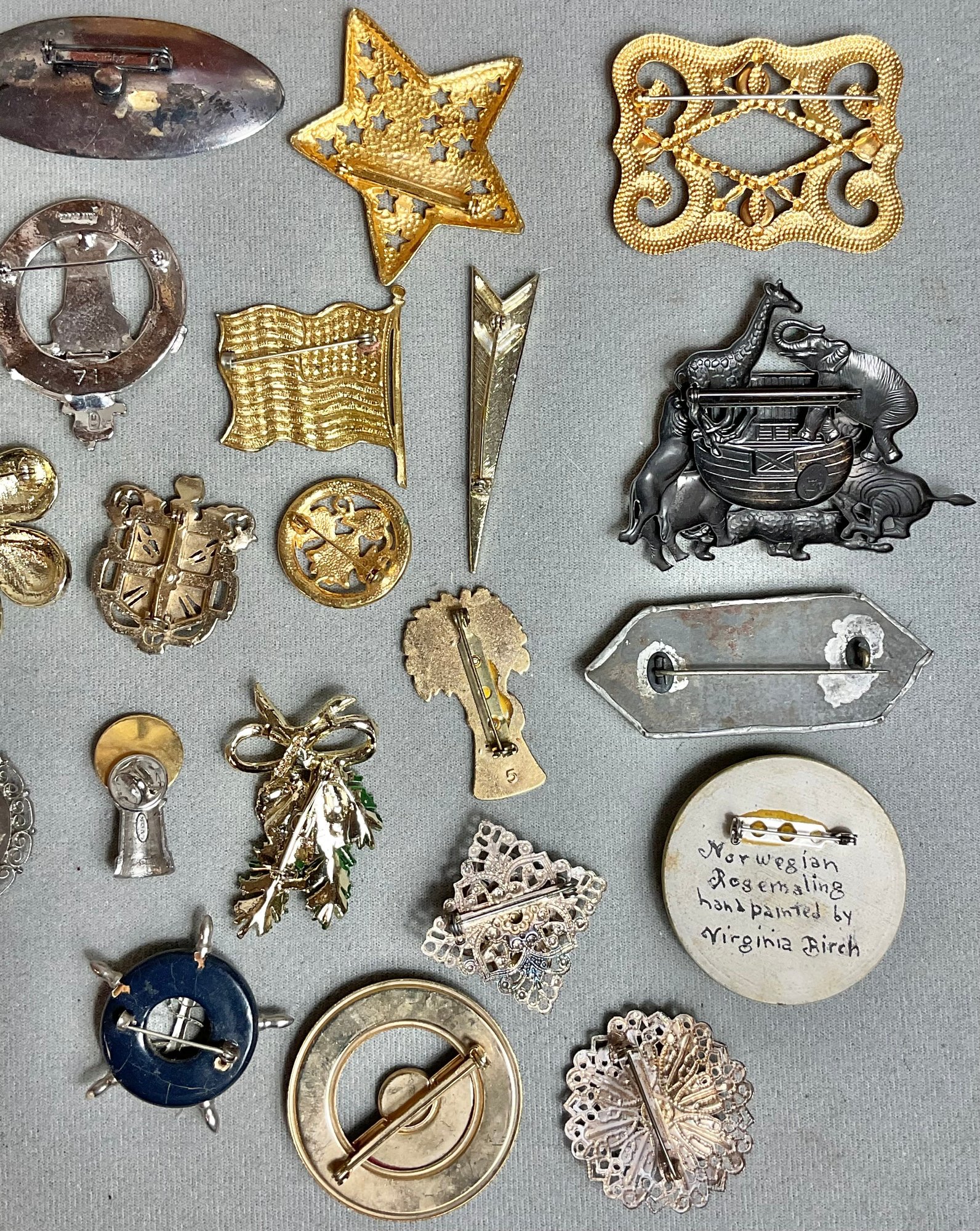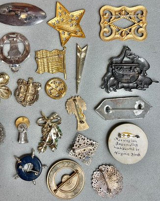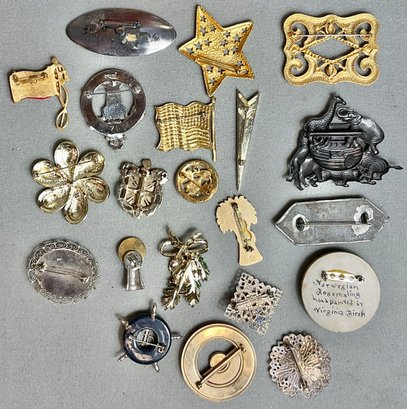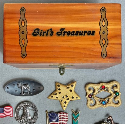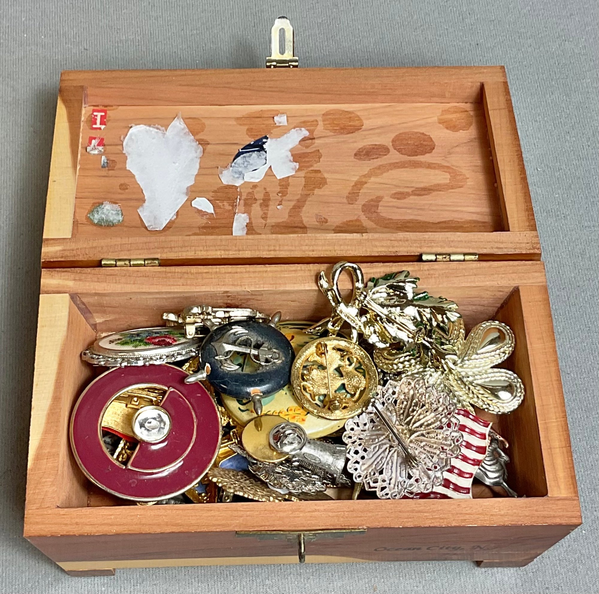 Ocean City NJ Treasure Box Filled With 21 Brooches/Pins - nice little vintage collection - some signed - good used condition