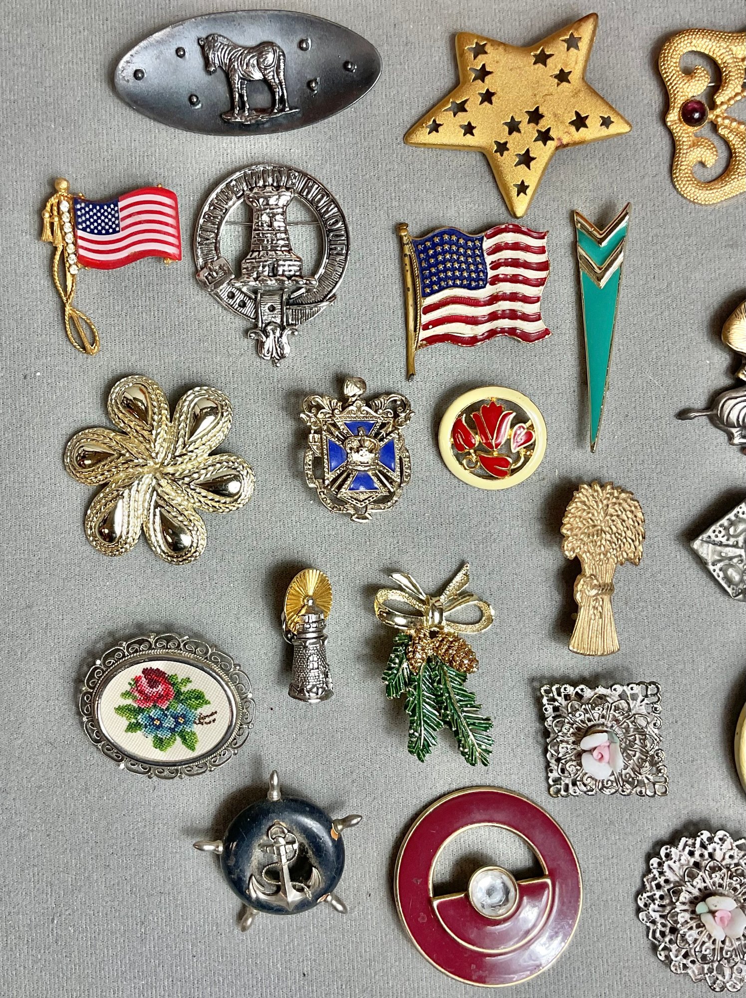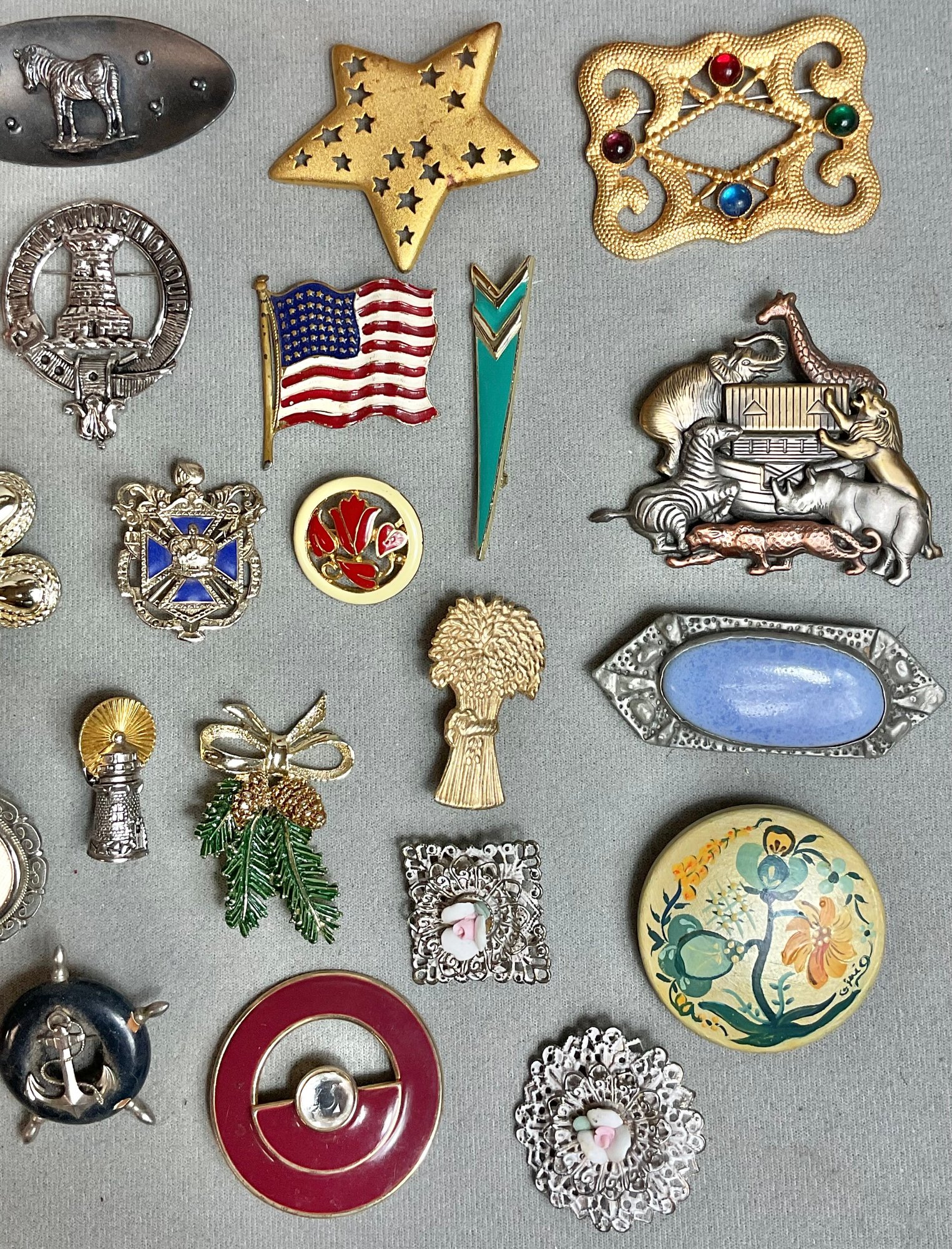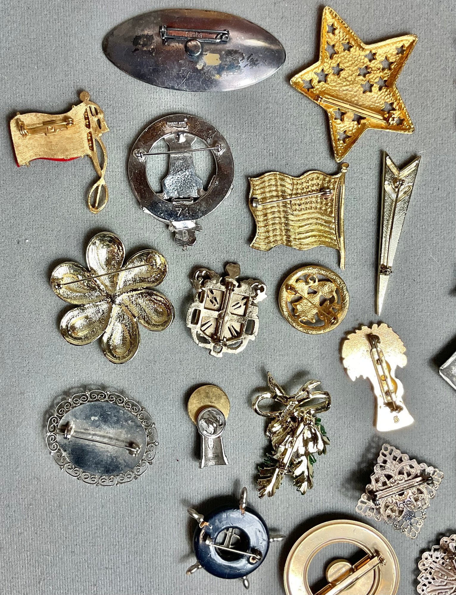 Ocean City NJ Treasure Box Filled With 21 Brooches/Pins - nice little vintage collection - some signed - good used condition