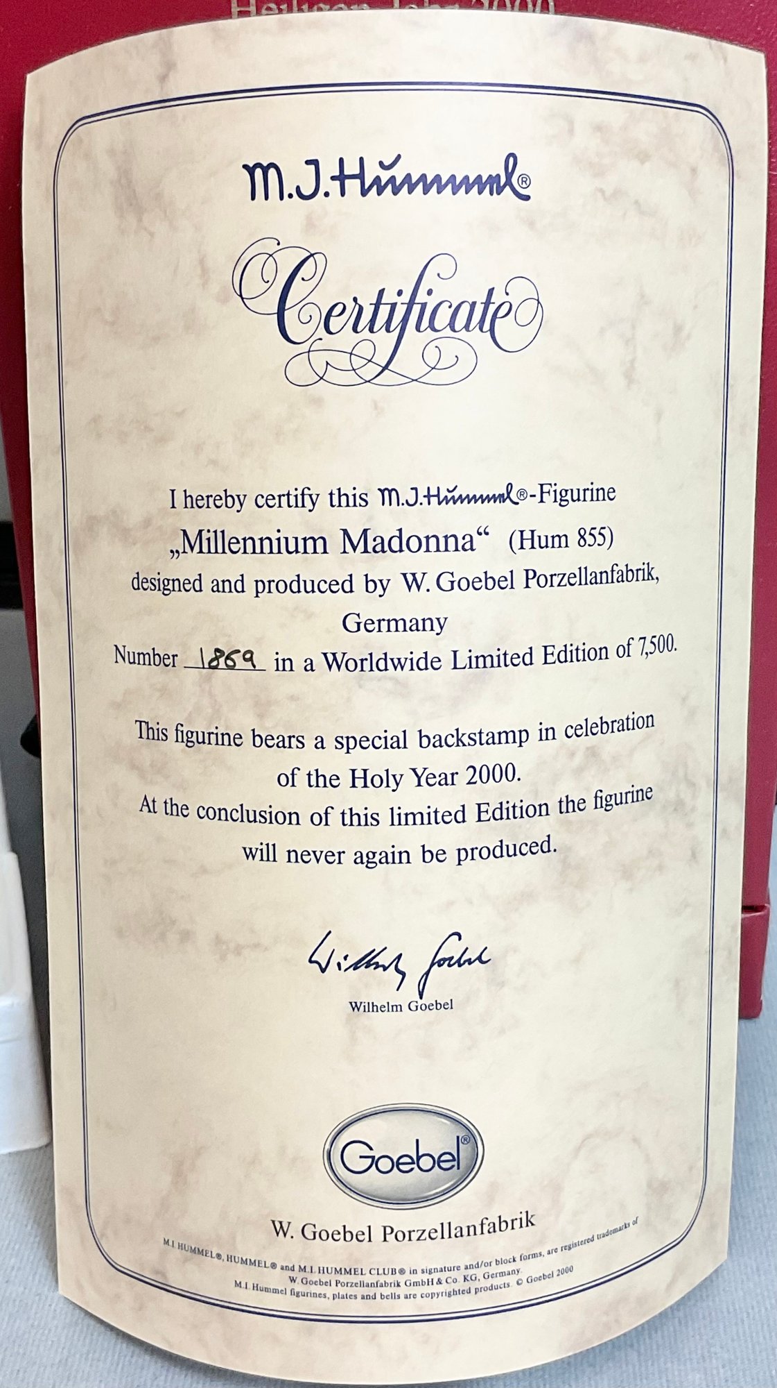 Goebel Hummel Holy Year 2000 Millennium Madonna - original box - limited edition 1869/7500 - no chips - 10.25” tall - good used condition