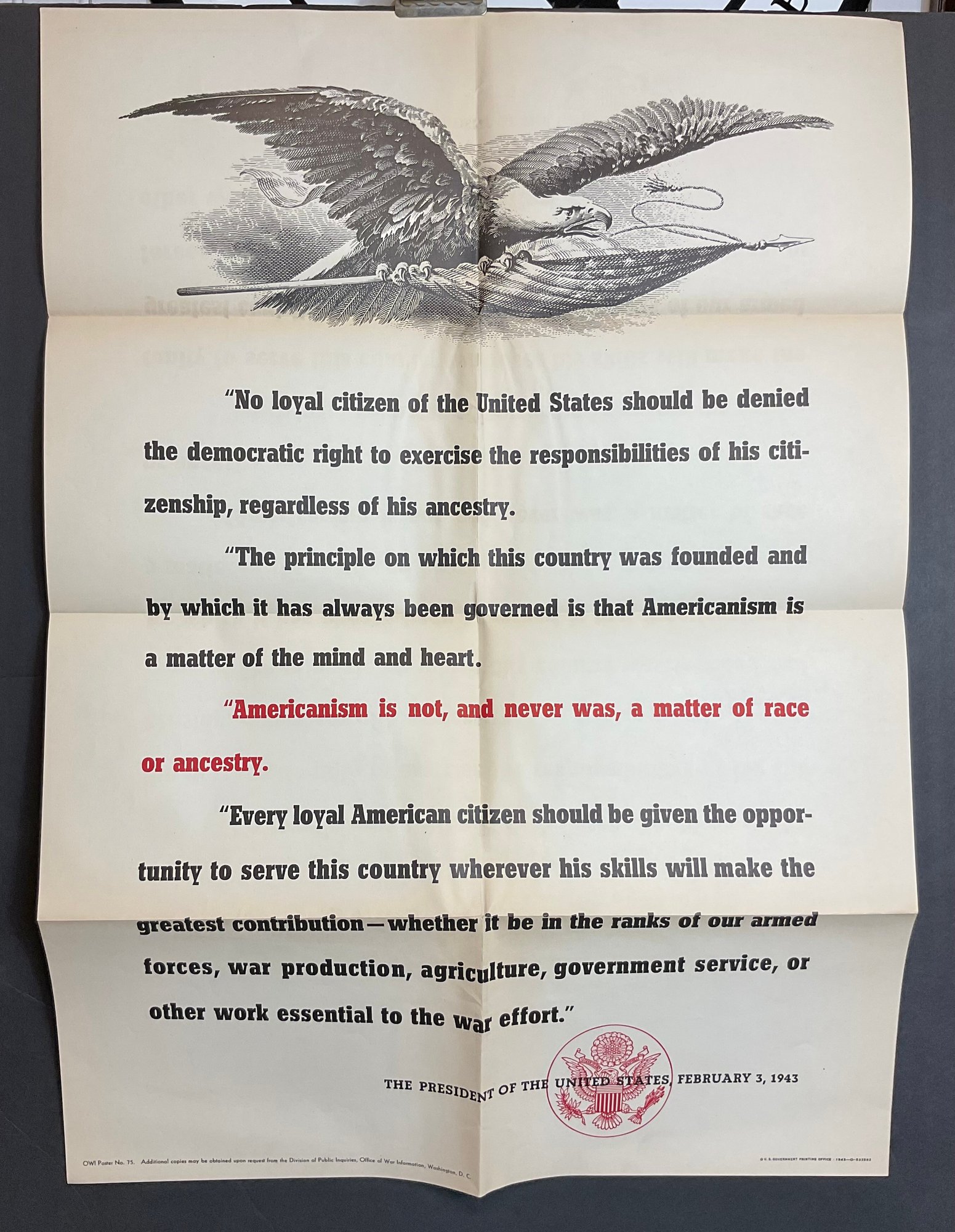 Original WW2 Citizen Poster - 20” x 28” - 80 years old - good used condition