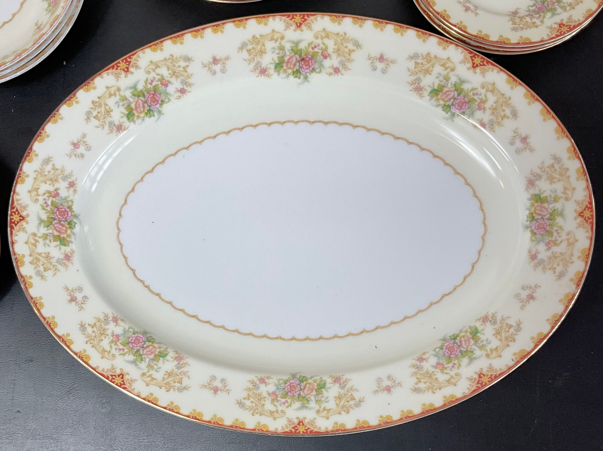 Noritake China - Cardinal - Pieces - no chips - serving platter 12” x 16” - 4 salad plates 7 5/8” - 3 saucers 6 3/8” - 4 berry bowls 5.25” - 4 soup bowls 7 3/8” - good used condition
