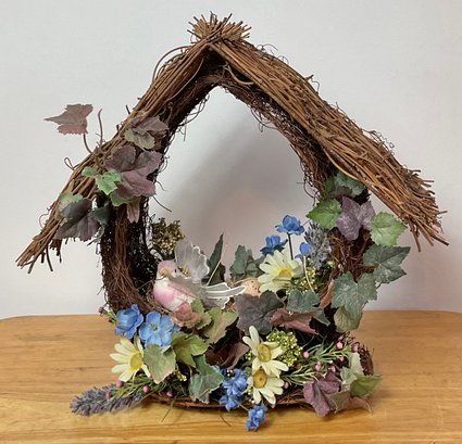 Grapevine Wreath Birdhouse - 11.5” tall x 13.5” long x 6.5” wide - good used condition