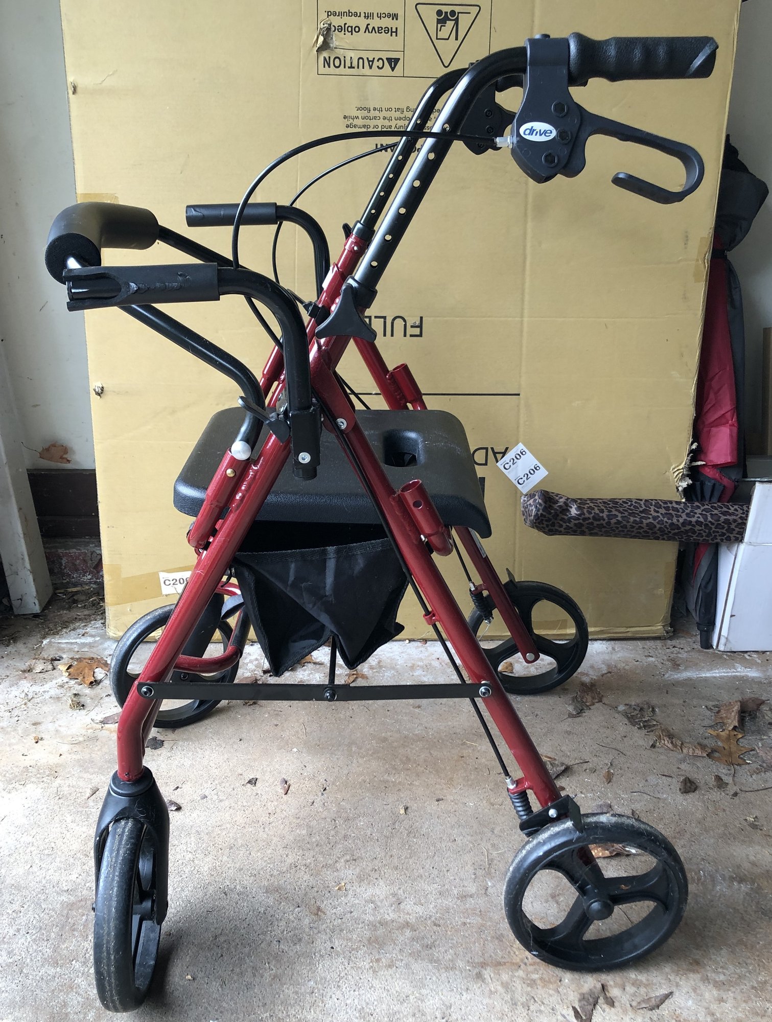 Red Drive Walker/ Seat W/ Brakes - 798BU - good used condition