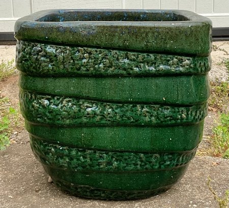 Green Ceramic Planter - no chips or cracks - 11.5” tall x 11.5” wide - good used condition