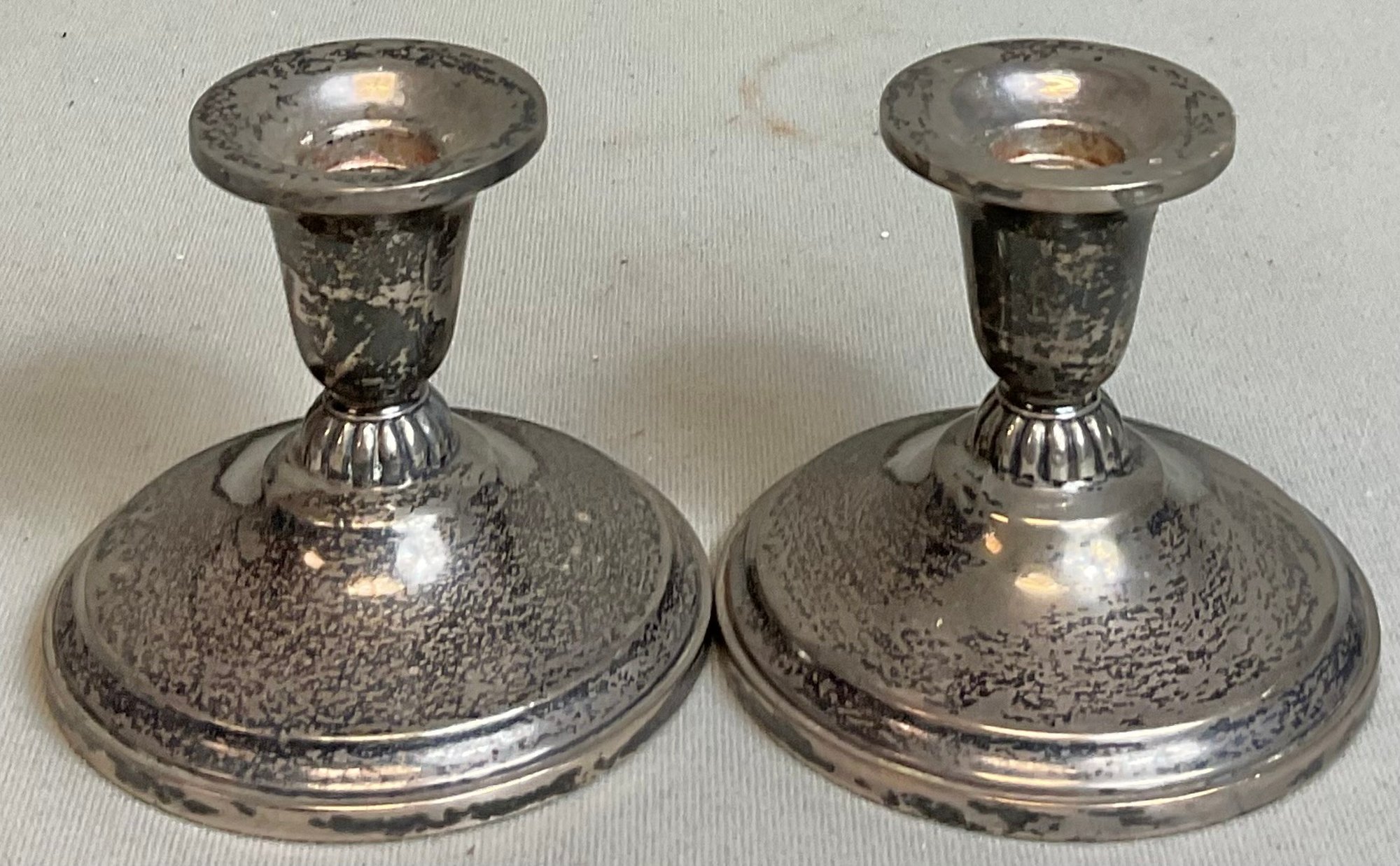 Revere Silversmiths Sterling Candle Sticks - Weighted - 3.5” tall - good used condition