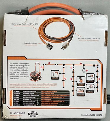 Rigid 25ft Generator Cord - New - 10 gauge 7500 watt 30 amp