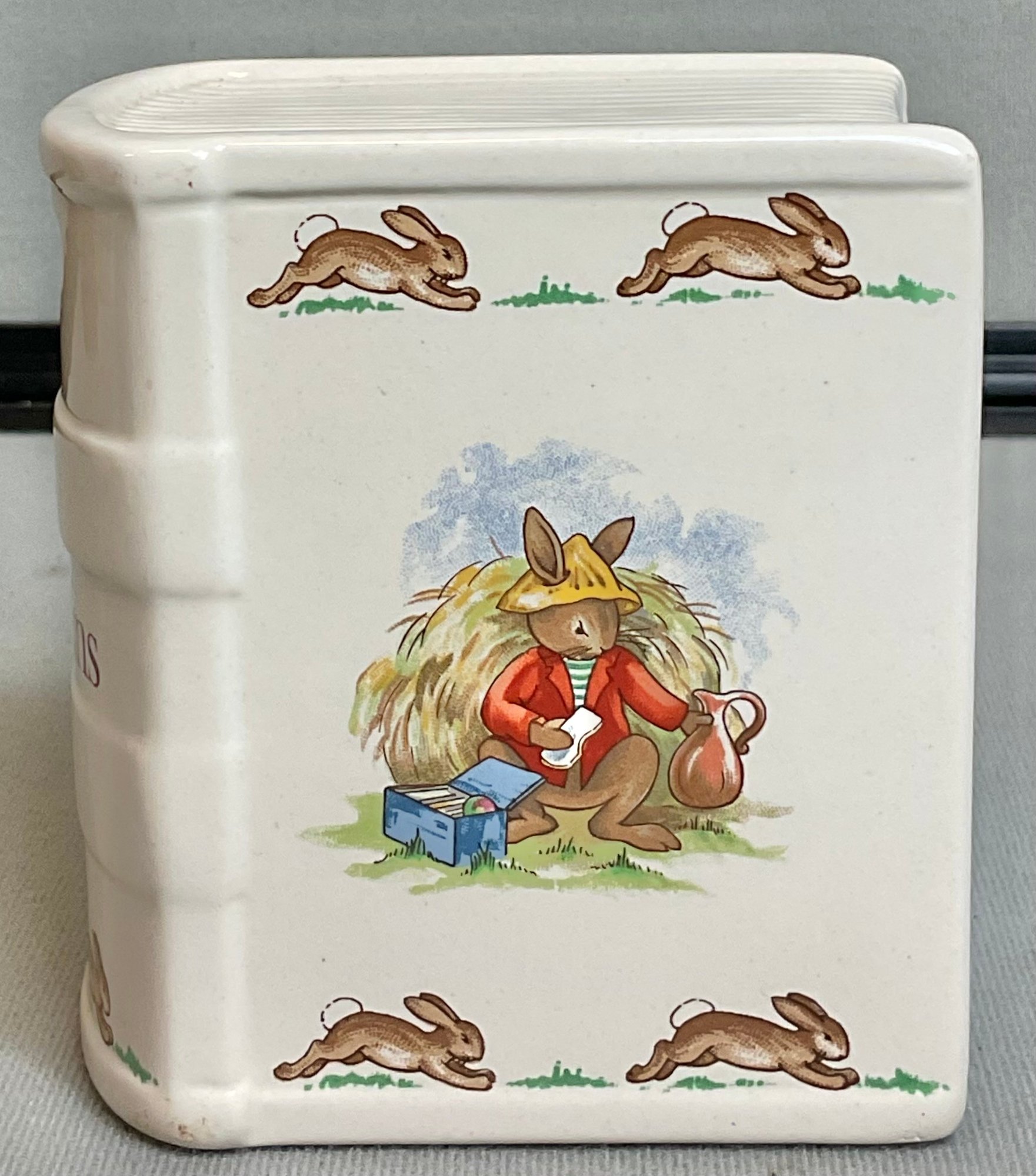 Royal Doulton Bunnykins Book Bank - 4 1/8” tall x 4” long x 2.5” wide - good used condition