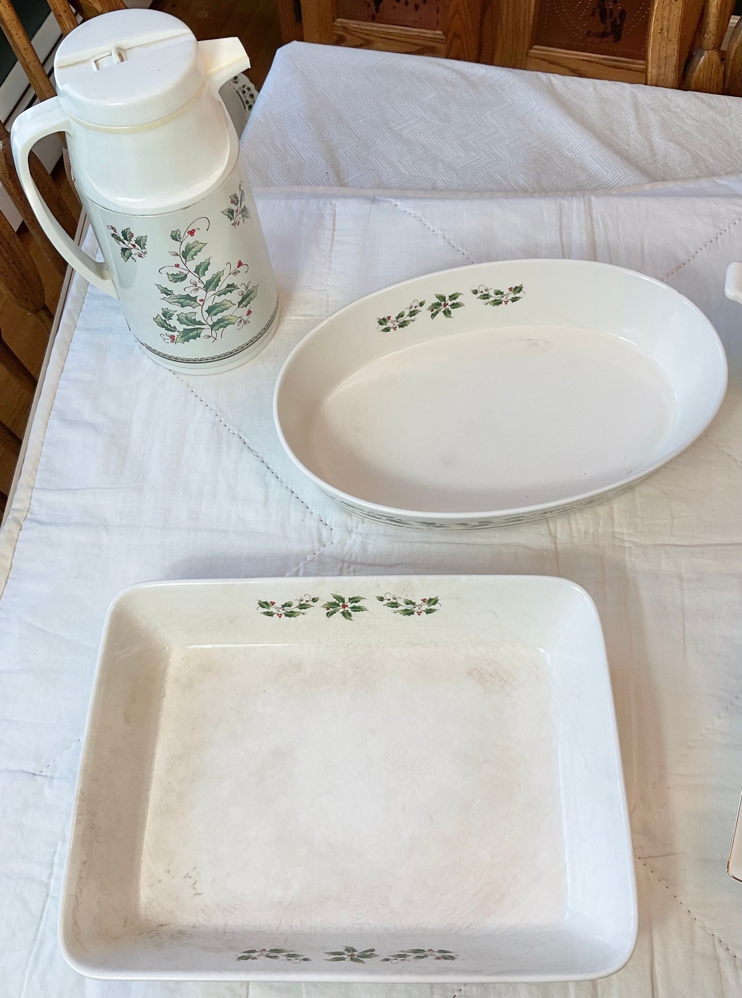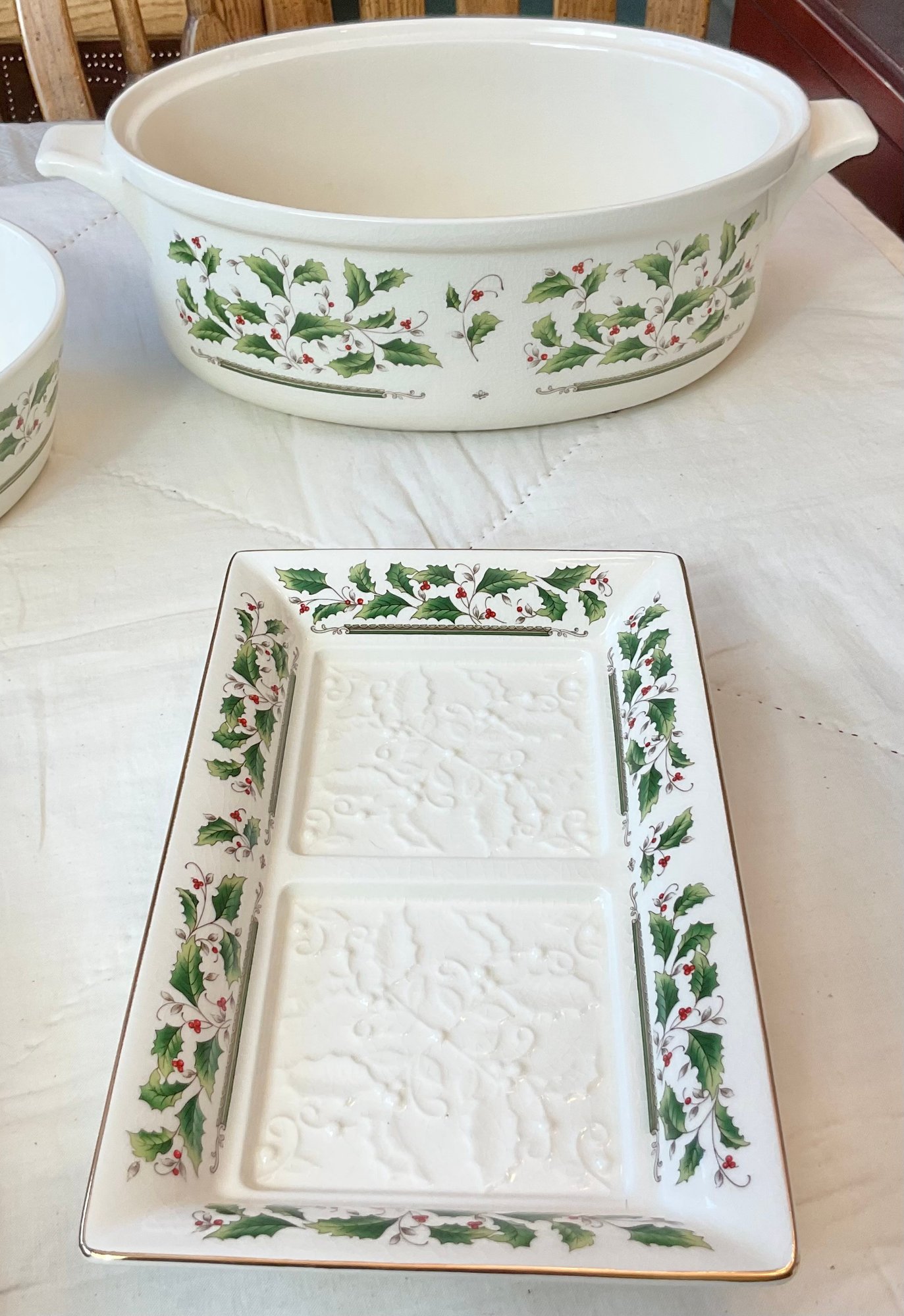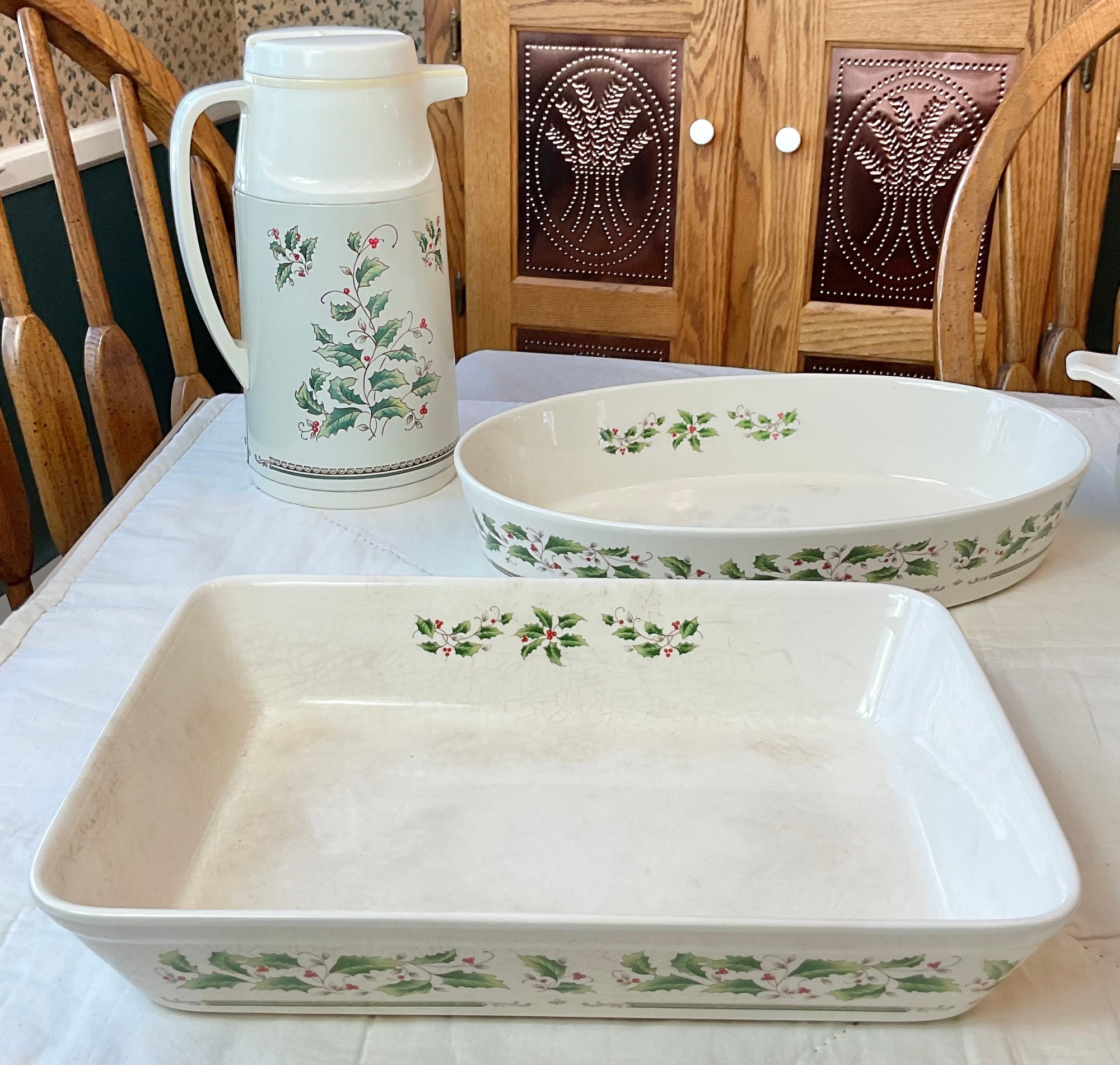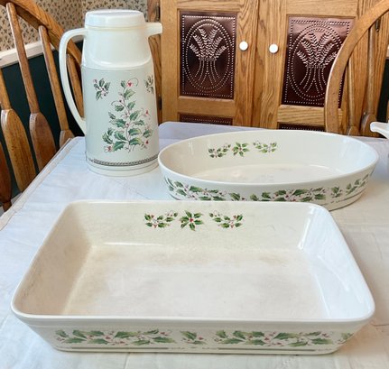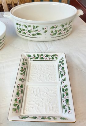 Royal Limited Holly Holiday Baking/Serving Pieces - 5pc - assorted sizes -1 has small chip - good used condition