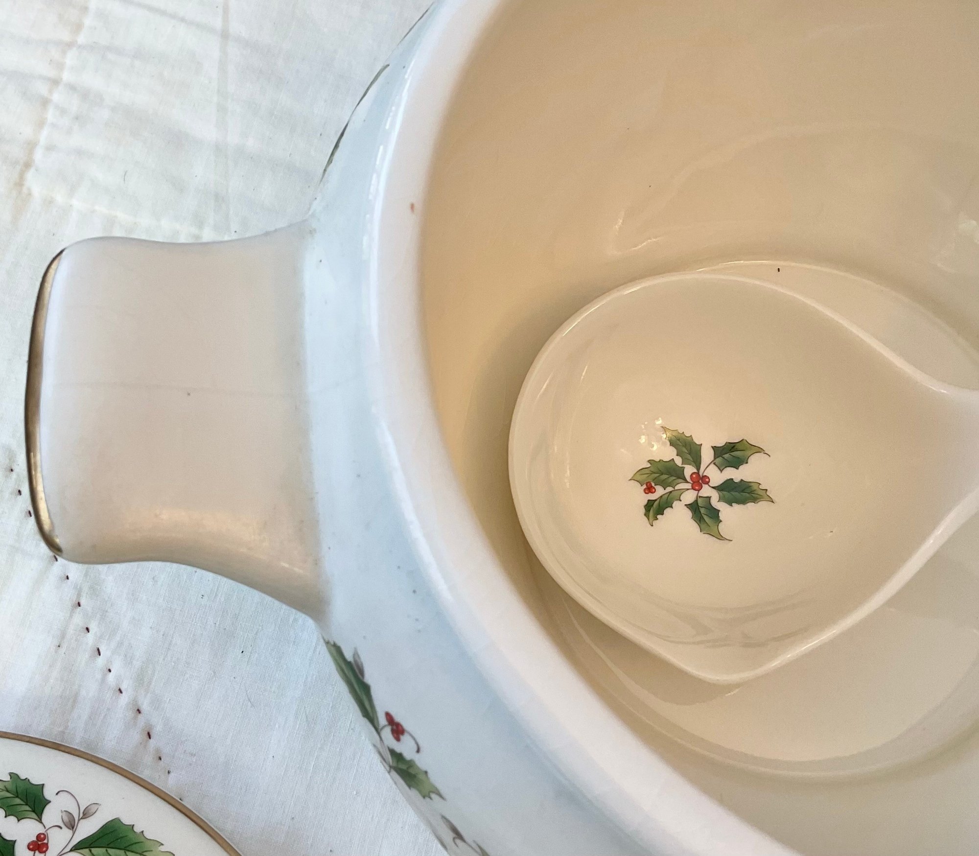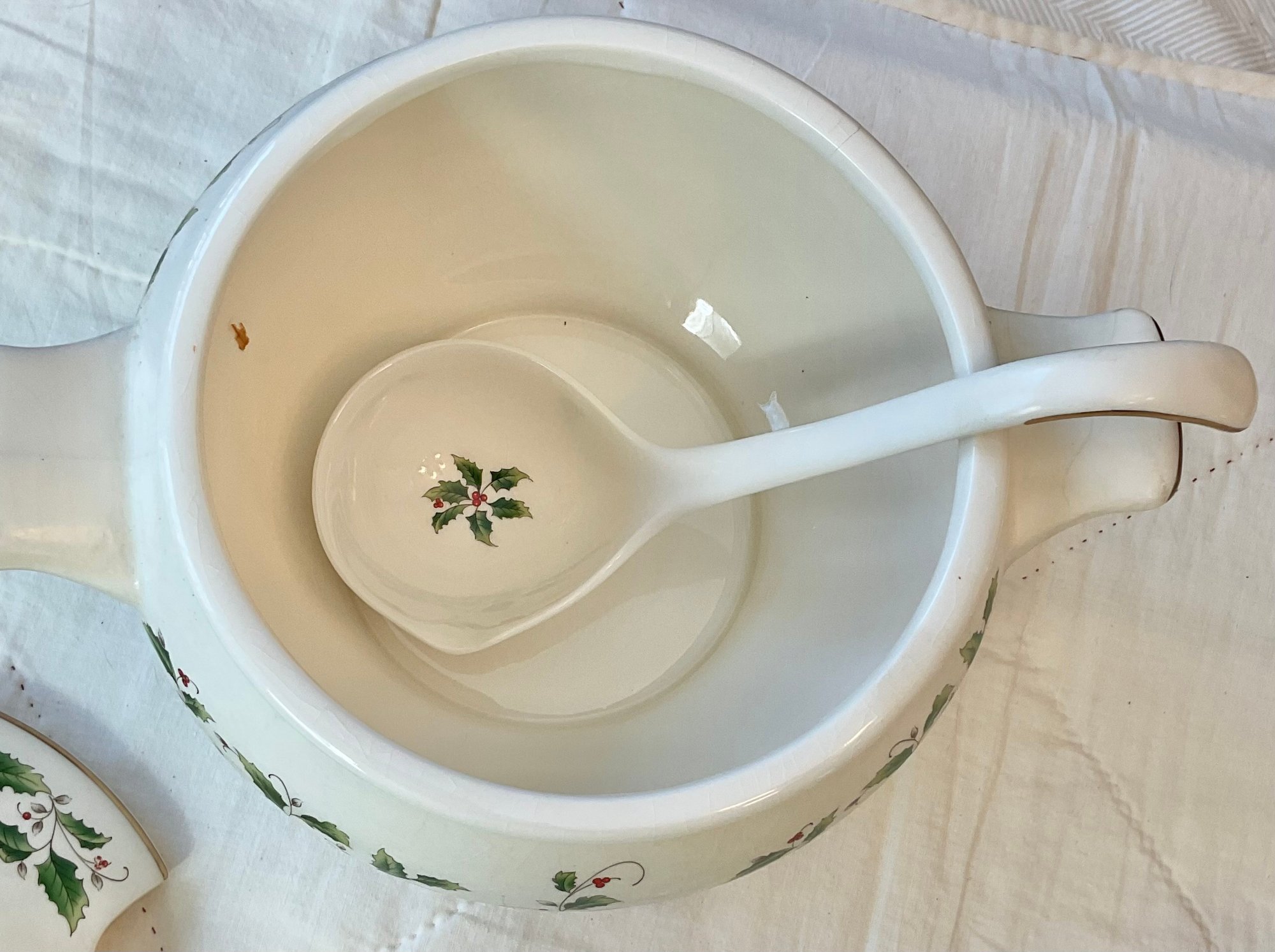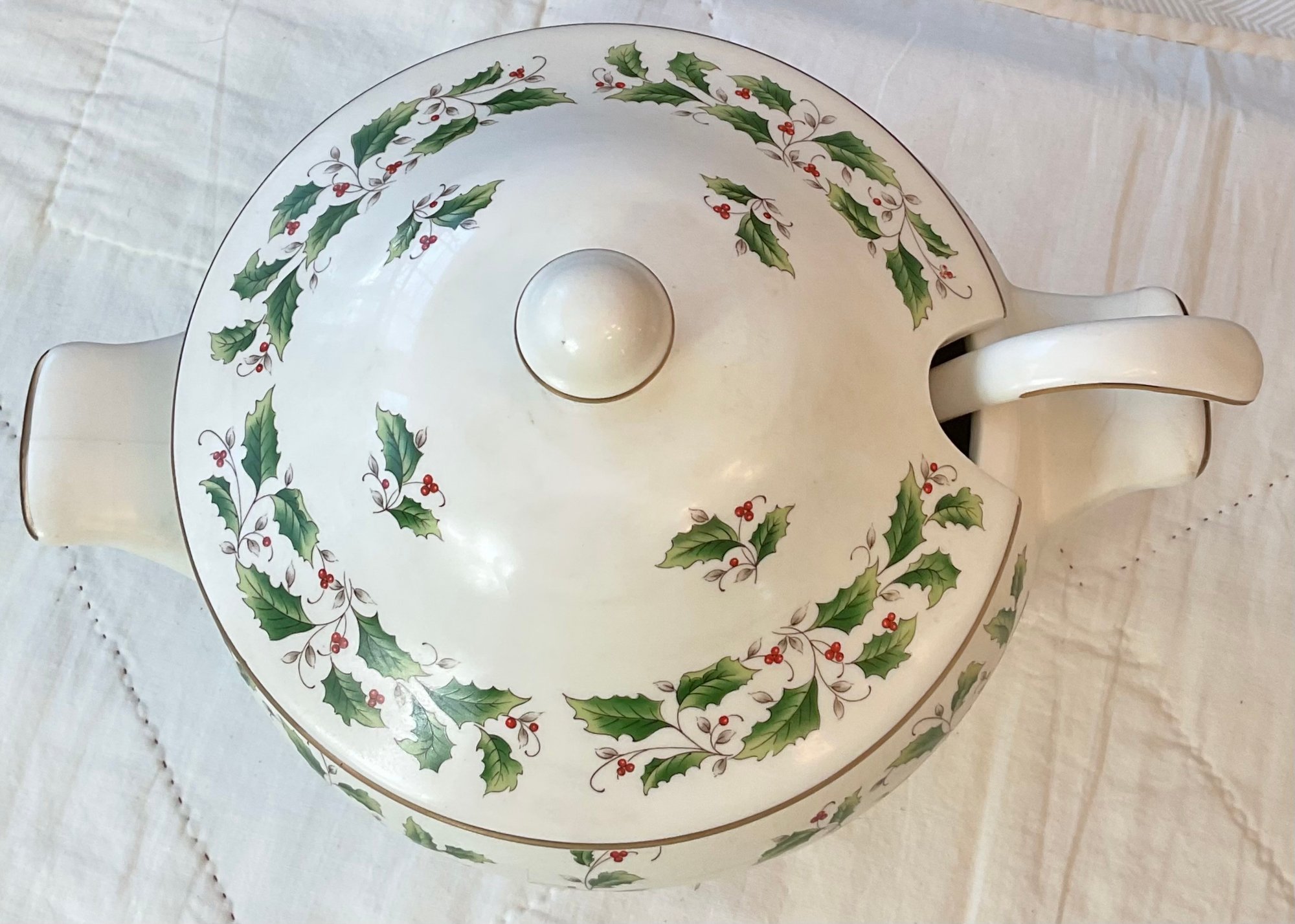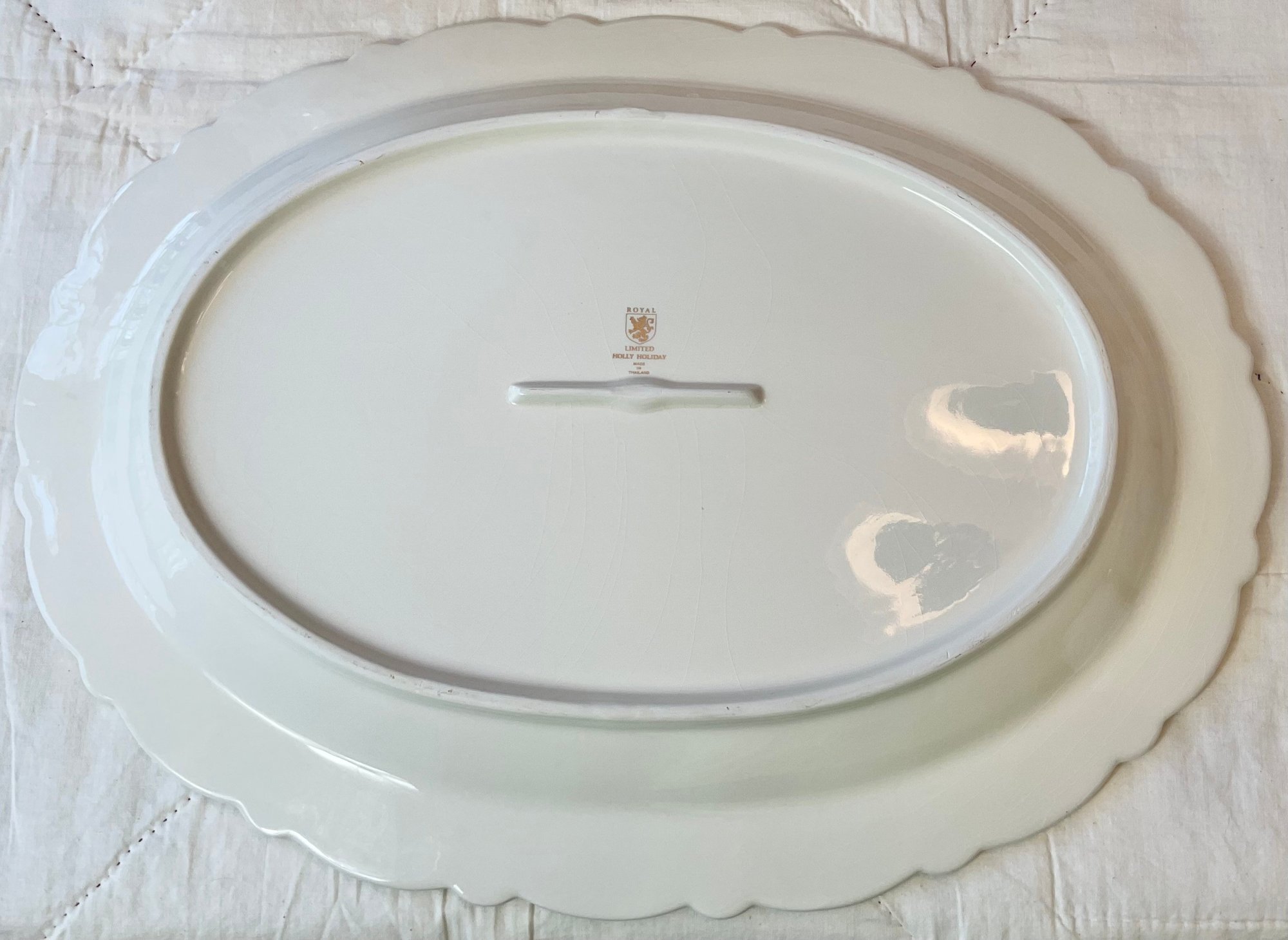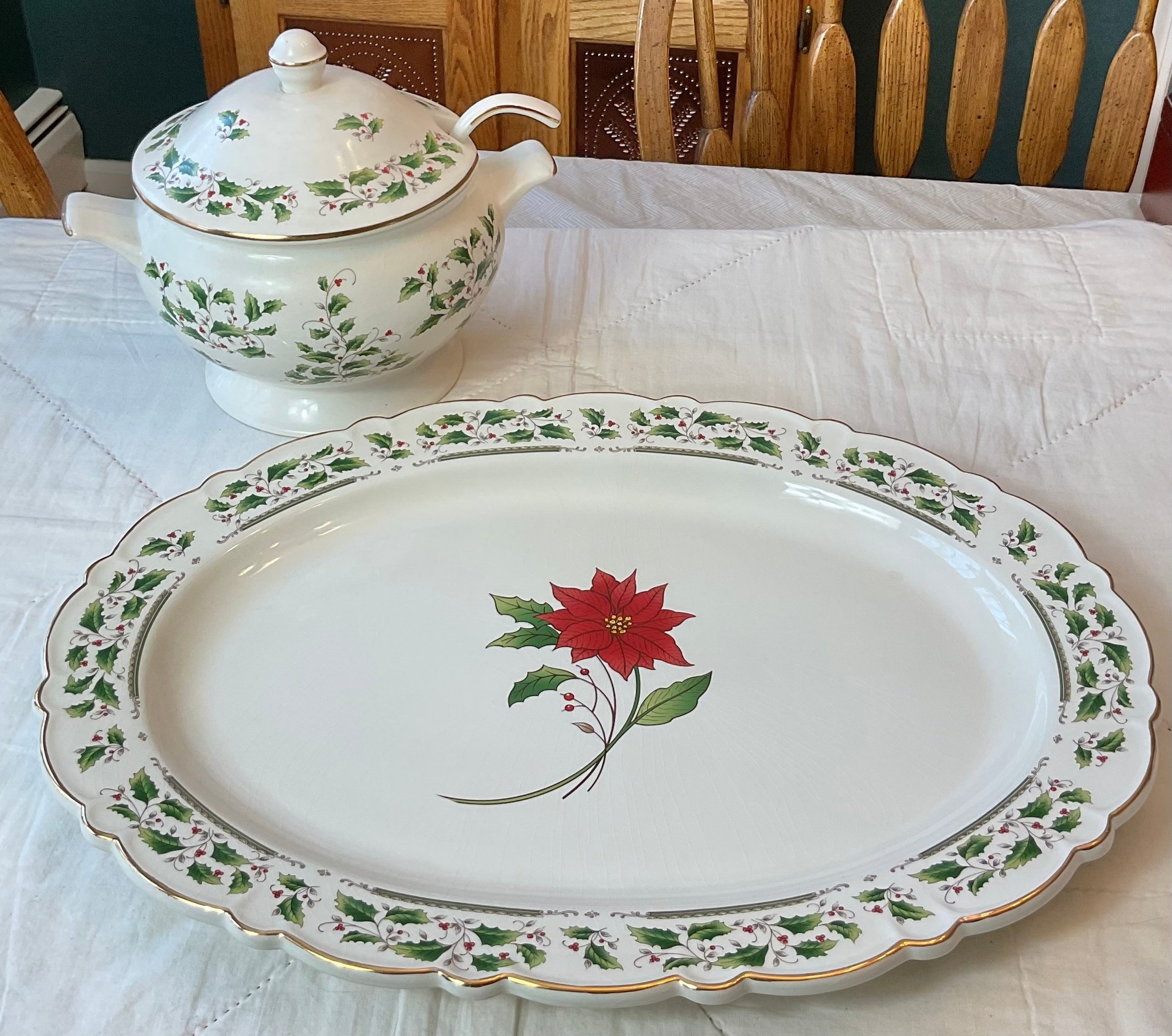 Royal Limited Holly Holiday Large Platter & Soup Tureen - no chips - platter 20.5” x 15.25” - soup tureen ( some crazing) 9” tall x 11.5” long x 8.75” wide - good used condition