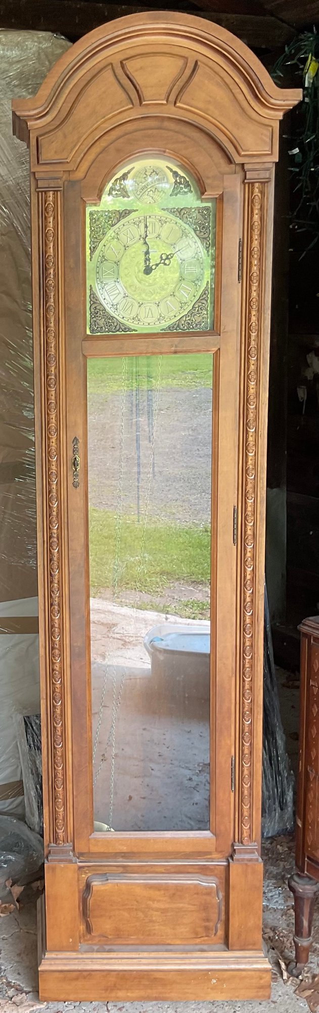 Seth Thomas Grandfather Clock - worked when moved to garage - 75” tall x 18.75” long x 9.75” wide - good used condition