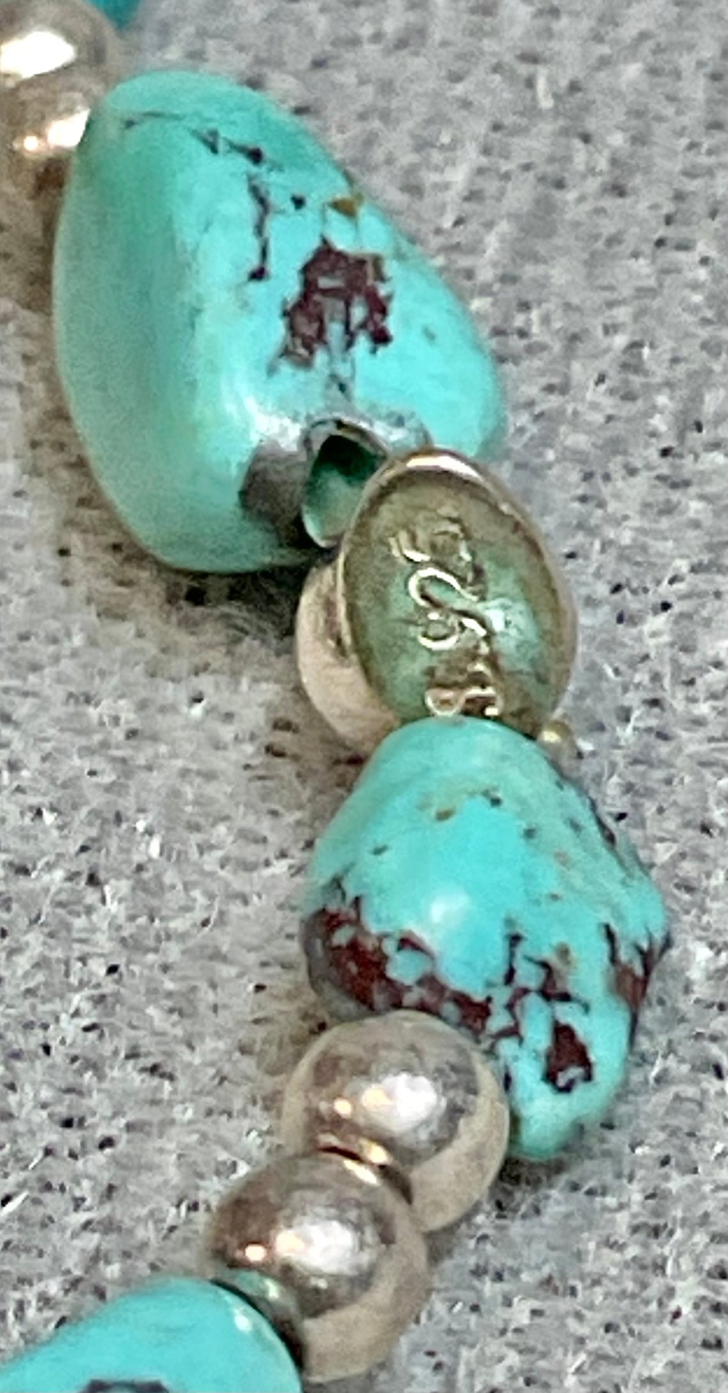 Shube Sterling & Turquoise Stretch Bracelet - 2.5” wide - good used condition
