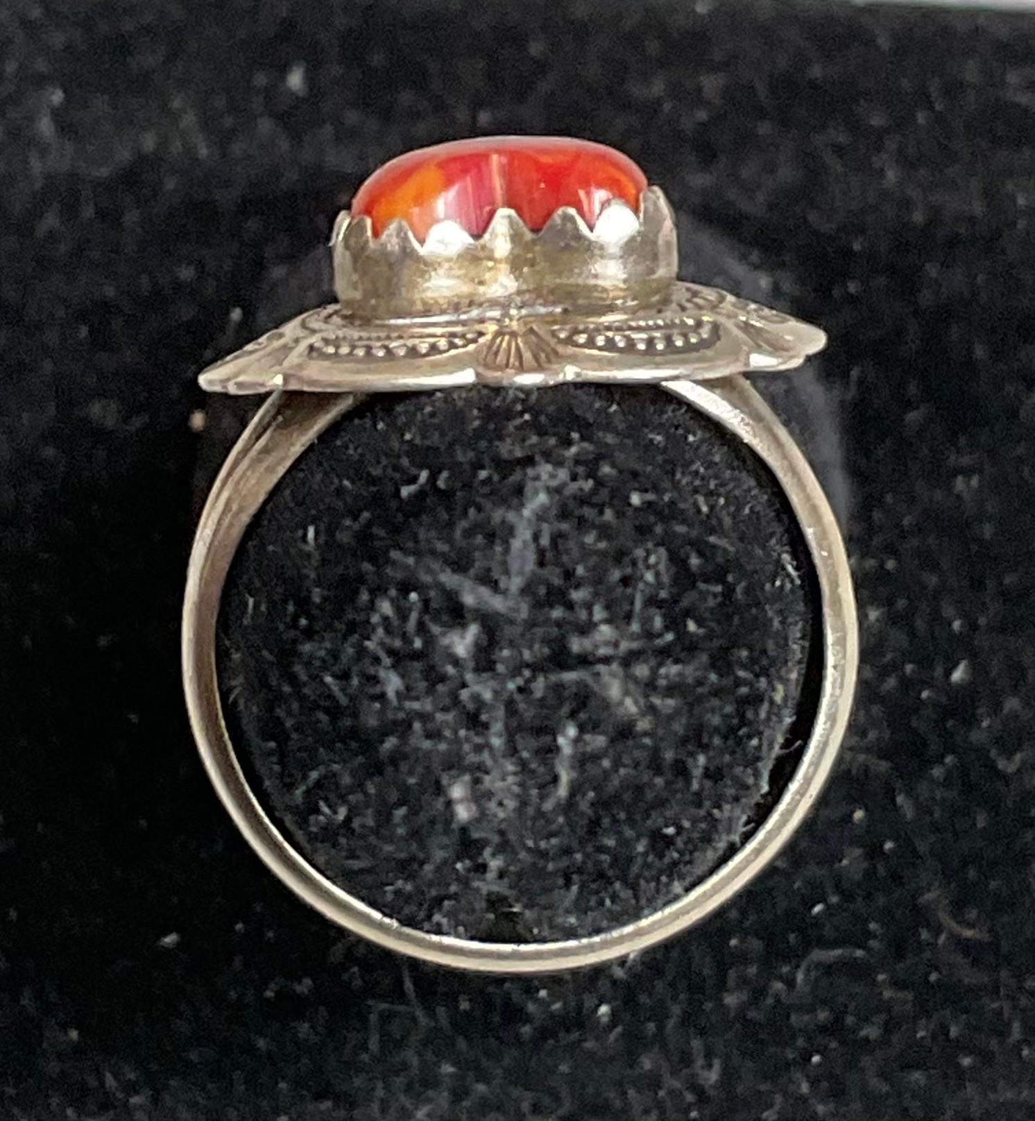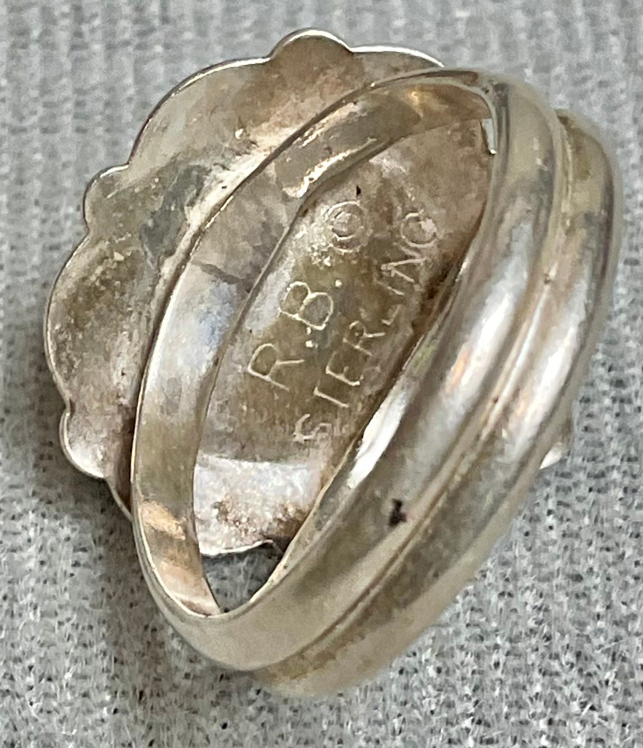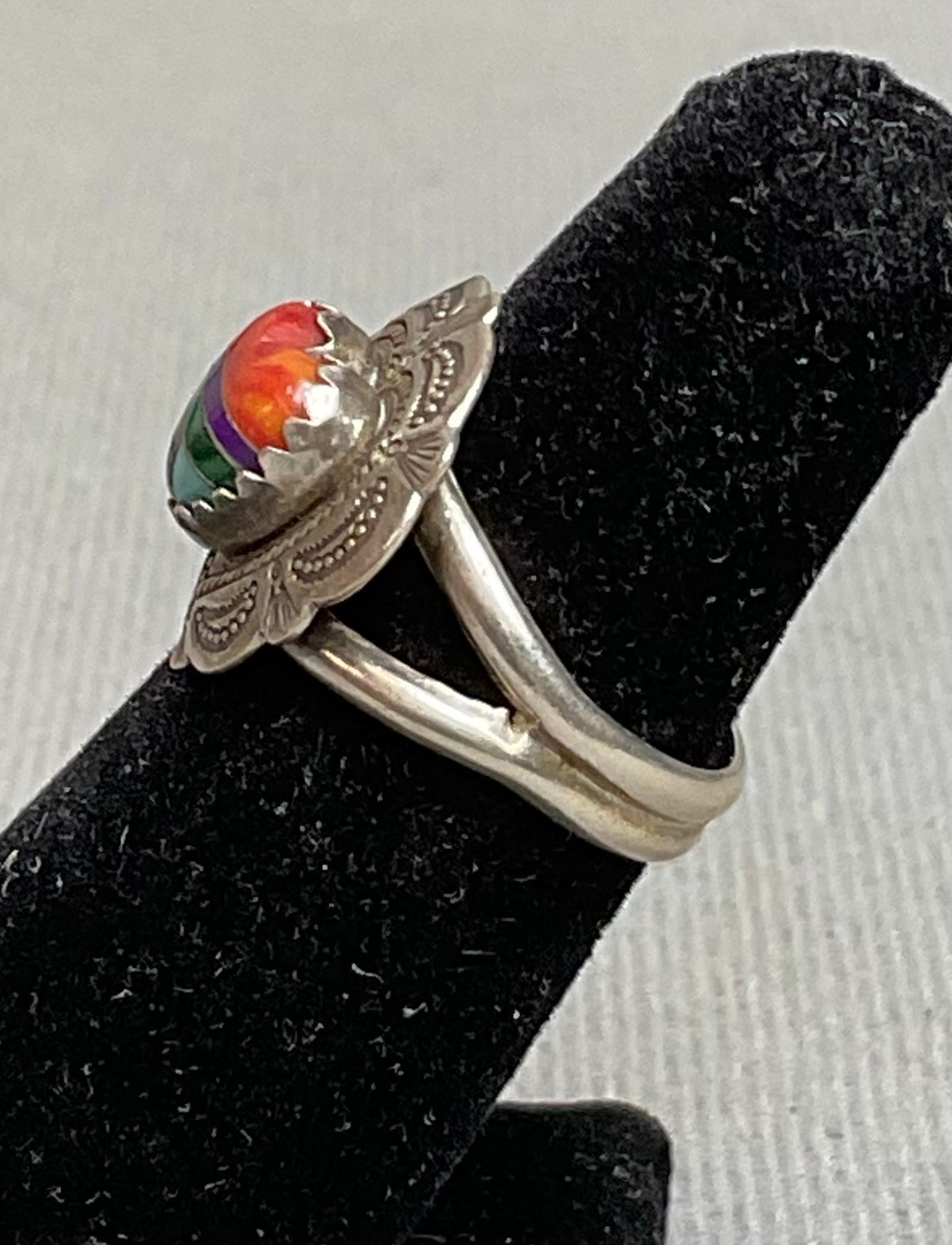 Signed Navajo Sterling & Multi Stone Inlay Heart Ring - signed RB - size 6 - weighs 3.2 grams - pretty ring - good used condition