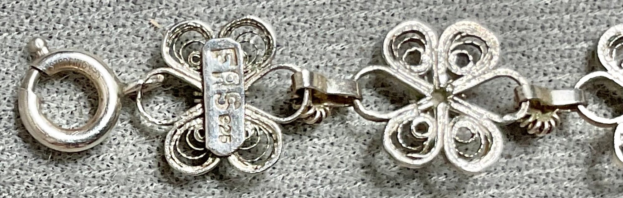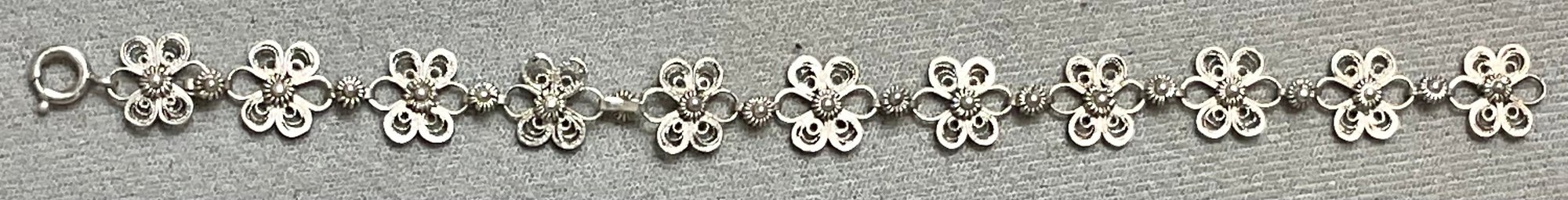 Signed Sterling Filigree Bracelet - FAS - 7” long - weighs 6.2 grams - good used condition