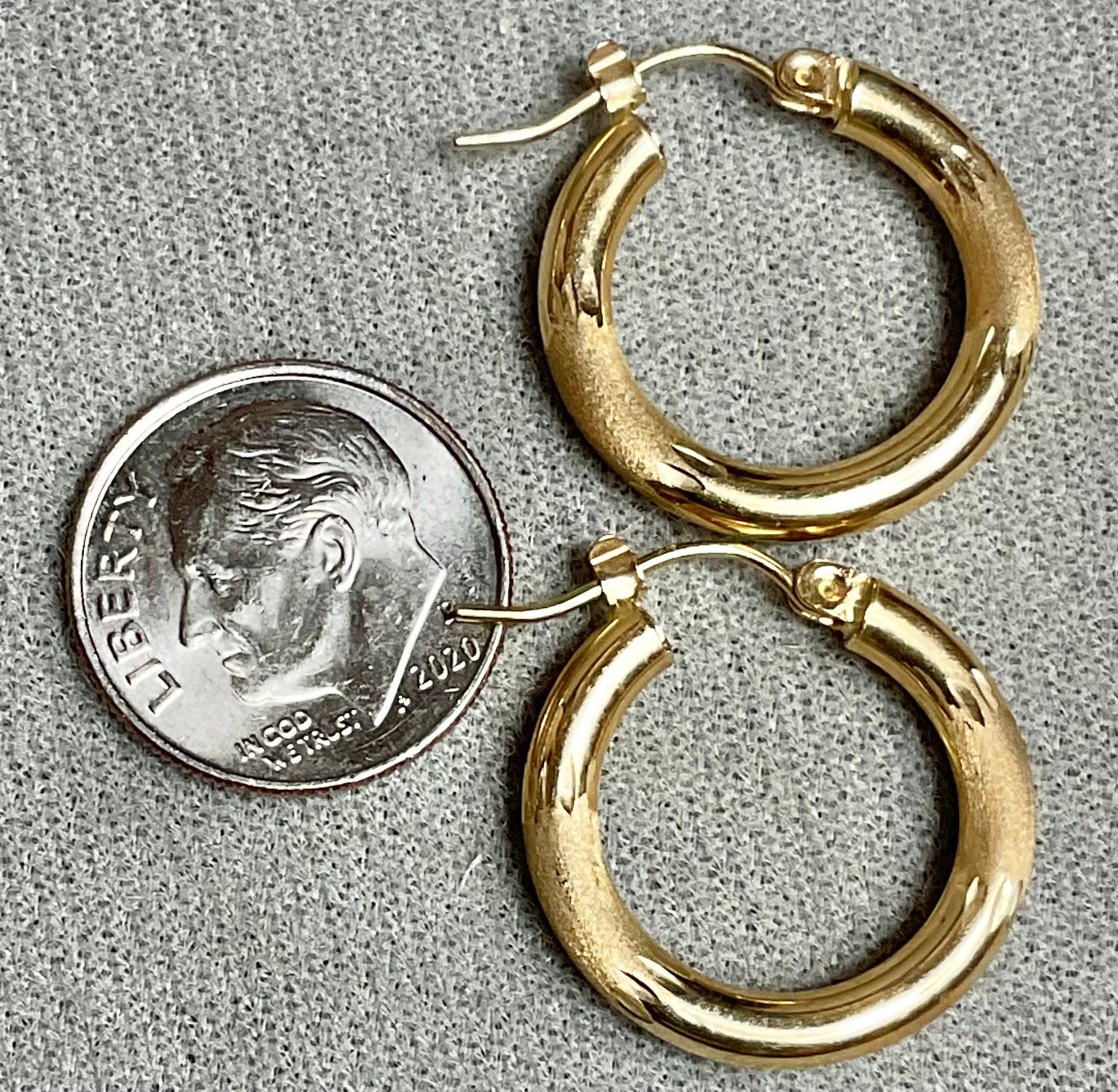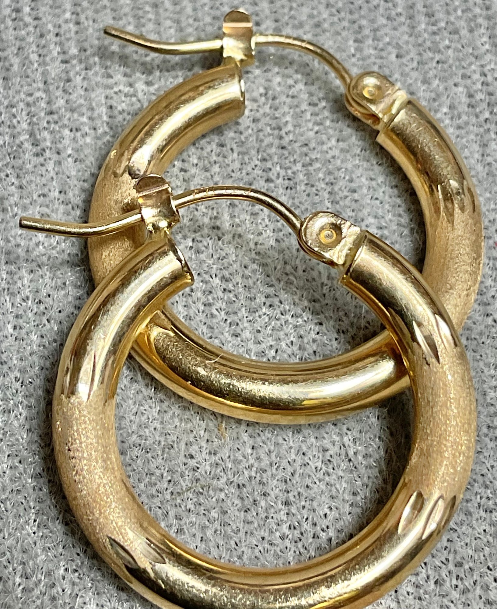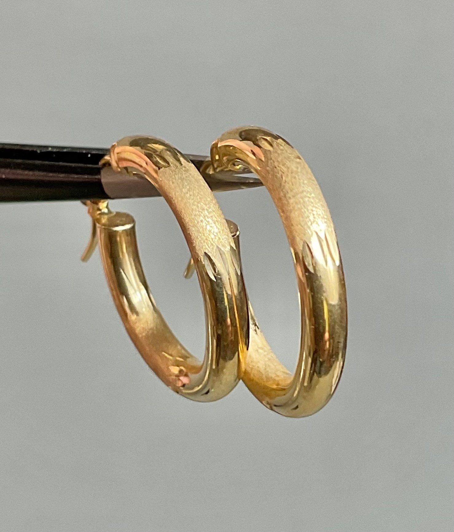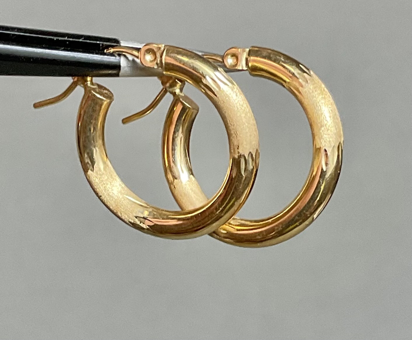 Small 14k Gold Hoop Earrings - 3/4” wide - weighs 1.4 grams - good used condition