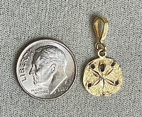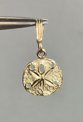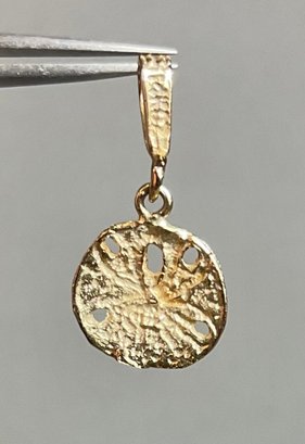 Small 14k Gold Sand Dollar Pendant - 7/16” x 1/2” - weighs .9 grams - good used condition