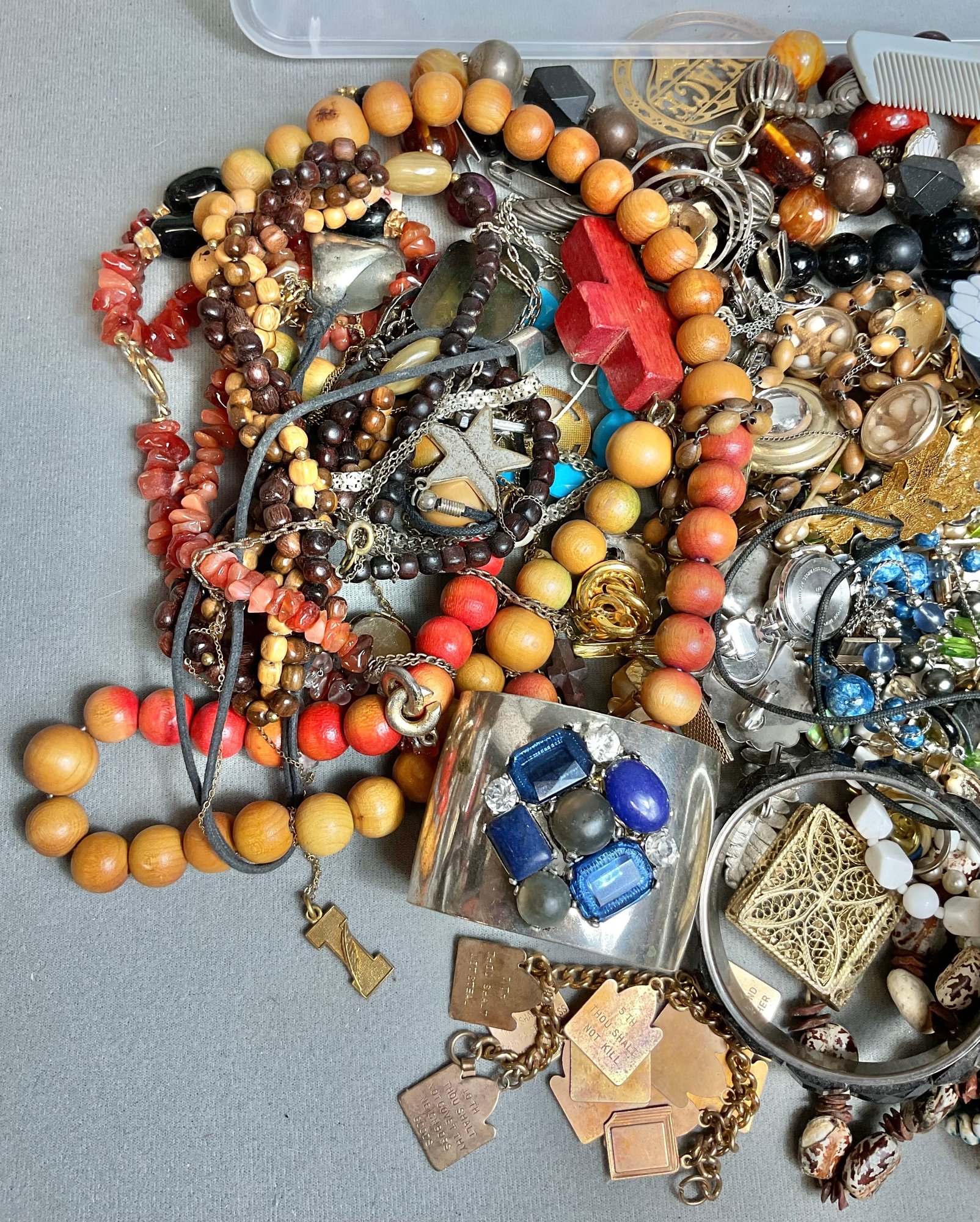 Small Container Mixed Costume Jewelry - as found - treasure hunt - good used condition