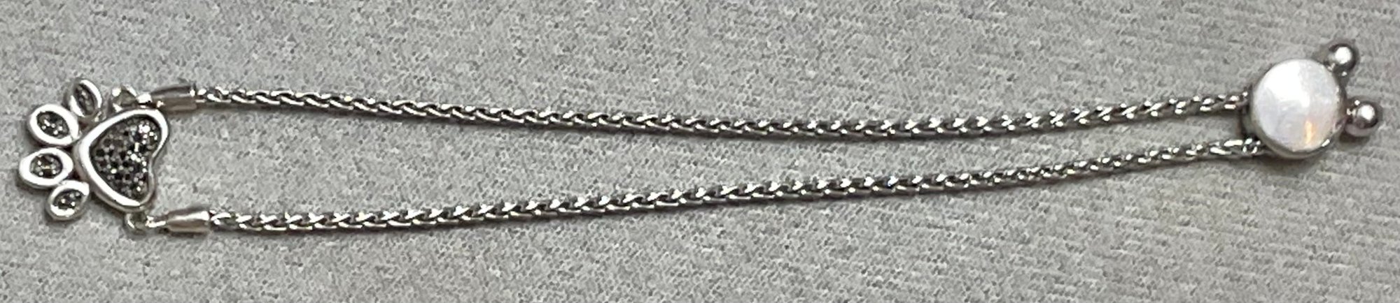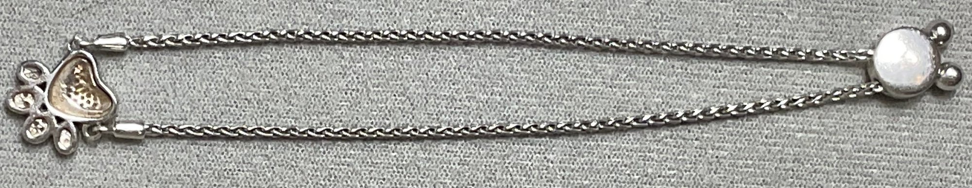 Sterling Adjustable Paw Print Bracelet - 4” fully adjusted - weighs 6.6 grams - good used condition