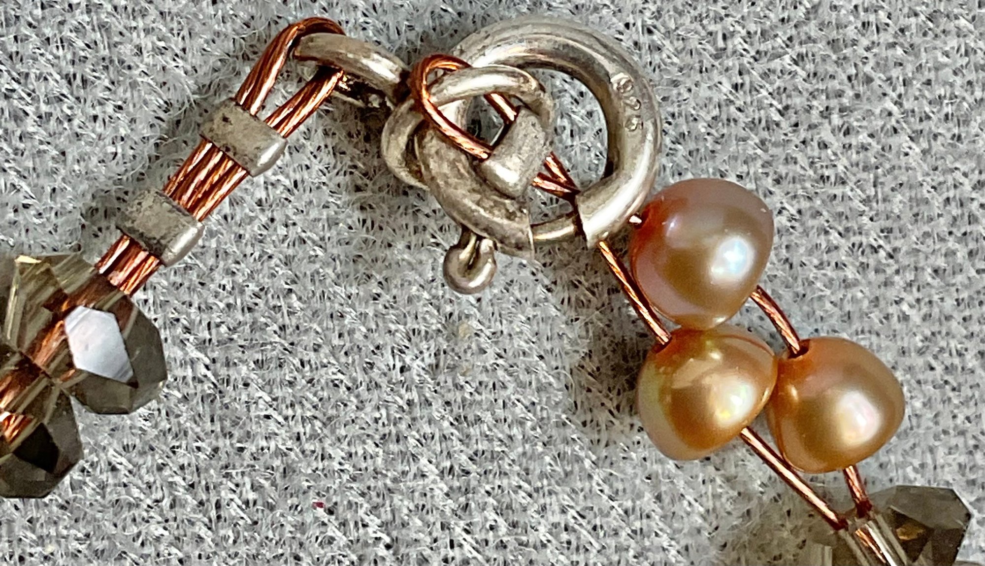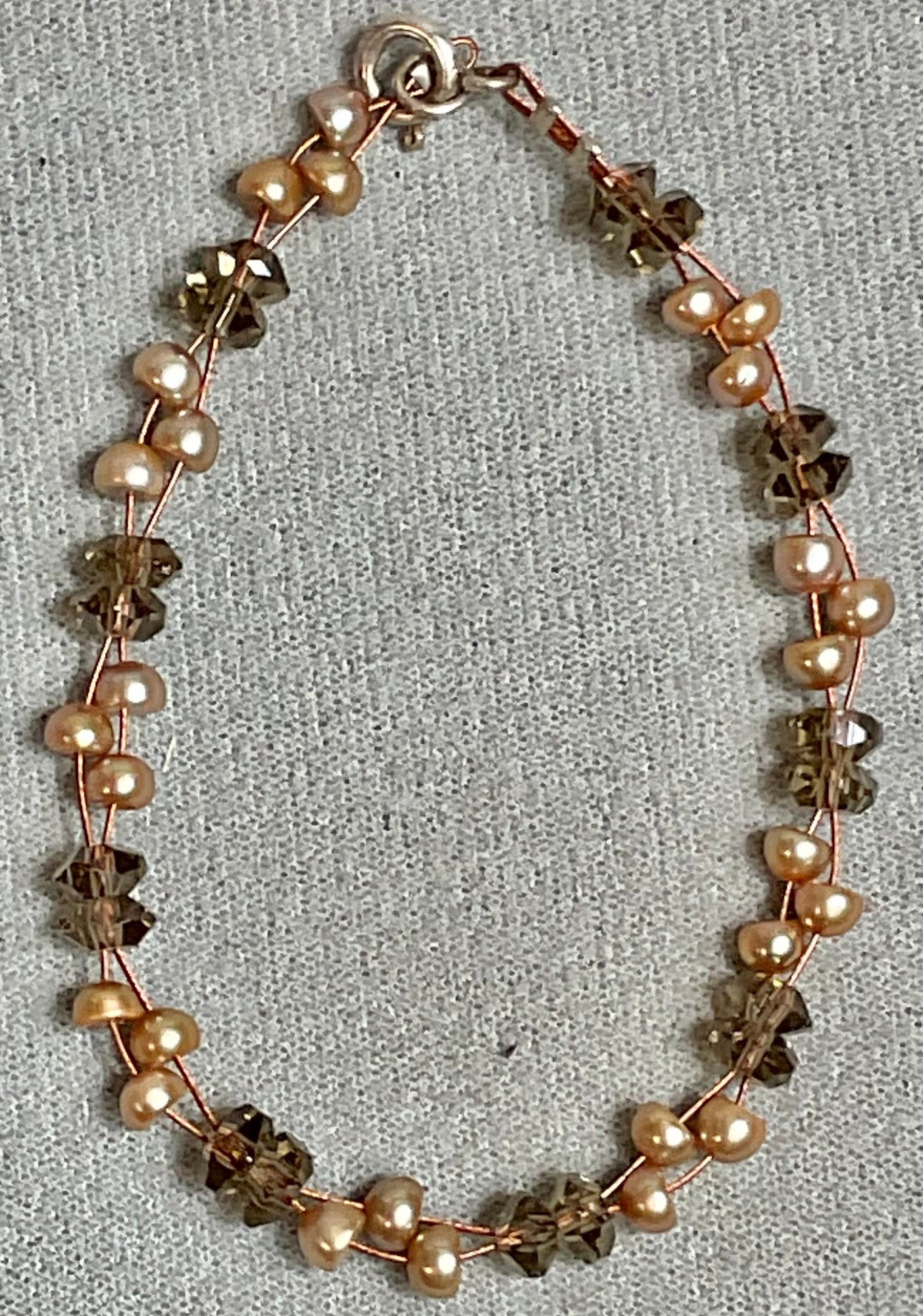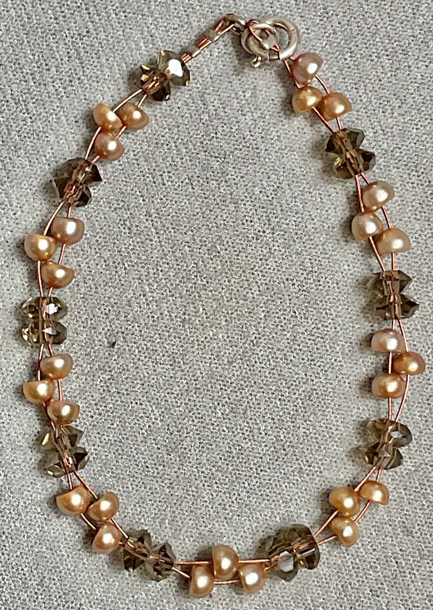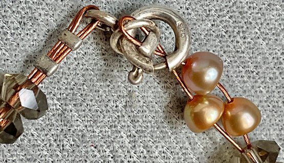 Sterling Clasp Glass Bead & Faux Pearl Bracelet - 7.5” long - good used condition