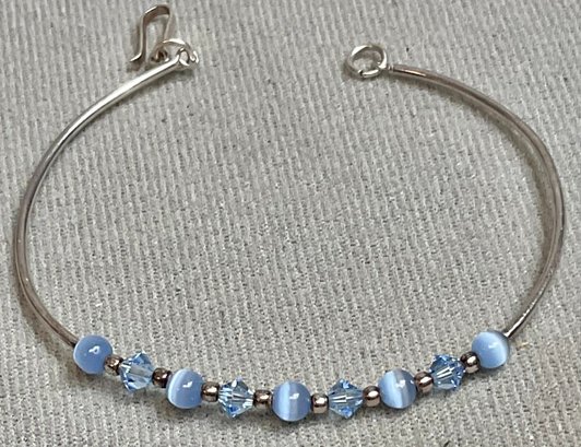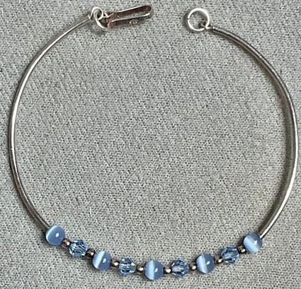 Sterling Fiber Optic & Glass Bead Bracelet - 2.5” wide - weighs 3 grams - good used condition