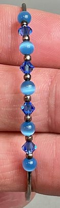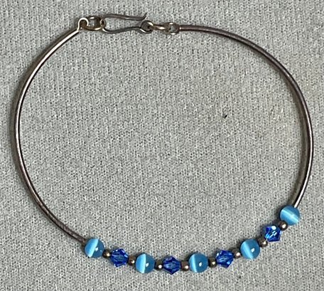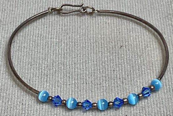 Sterling Fiber Optic & Glass Bead Bracelet - 2.5” opening - weighs 2.7 grams - good used condition