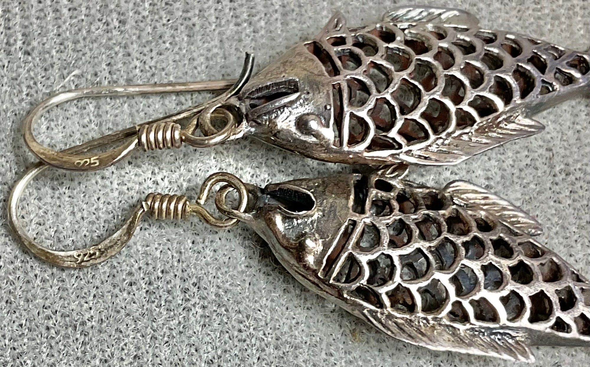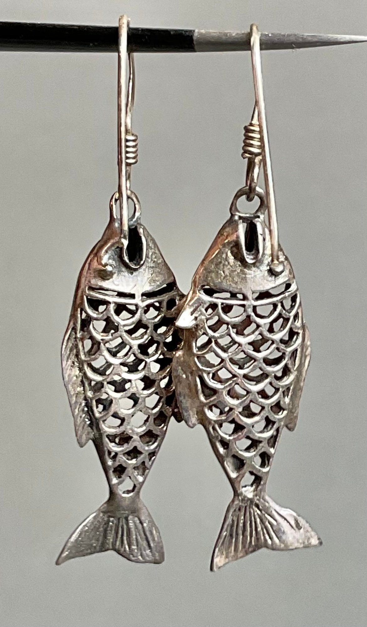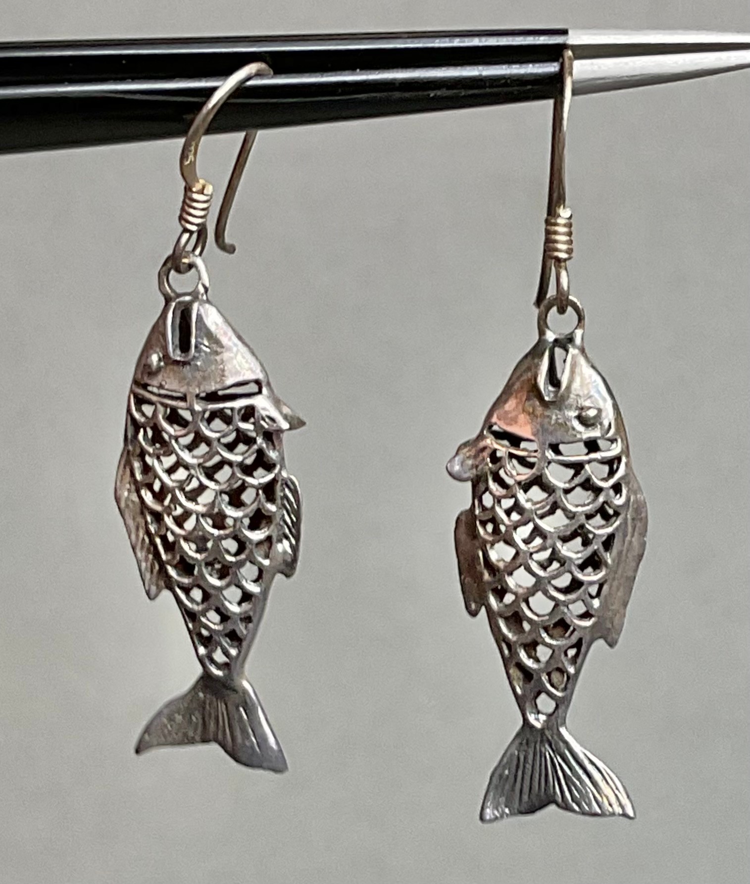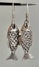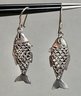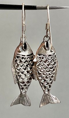 Sterling Fish Dangle Earrings - 1.25” long x 1/2” wide - weighs 4.1 grams - good used condition