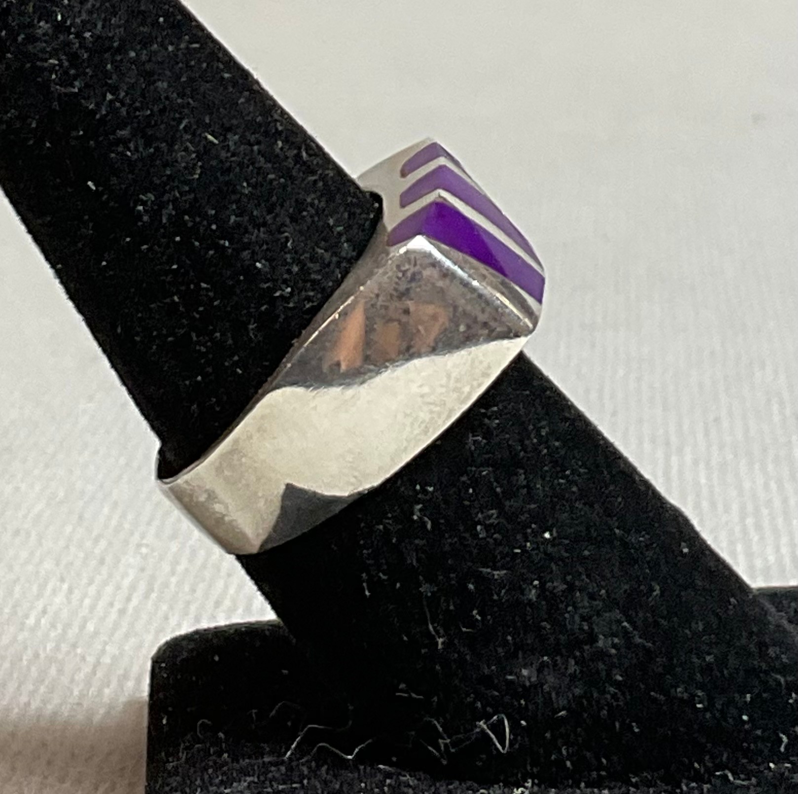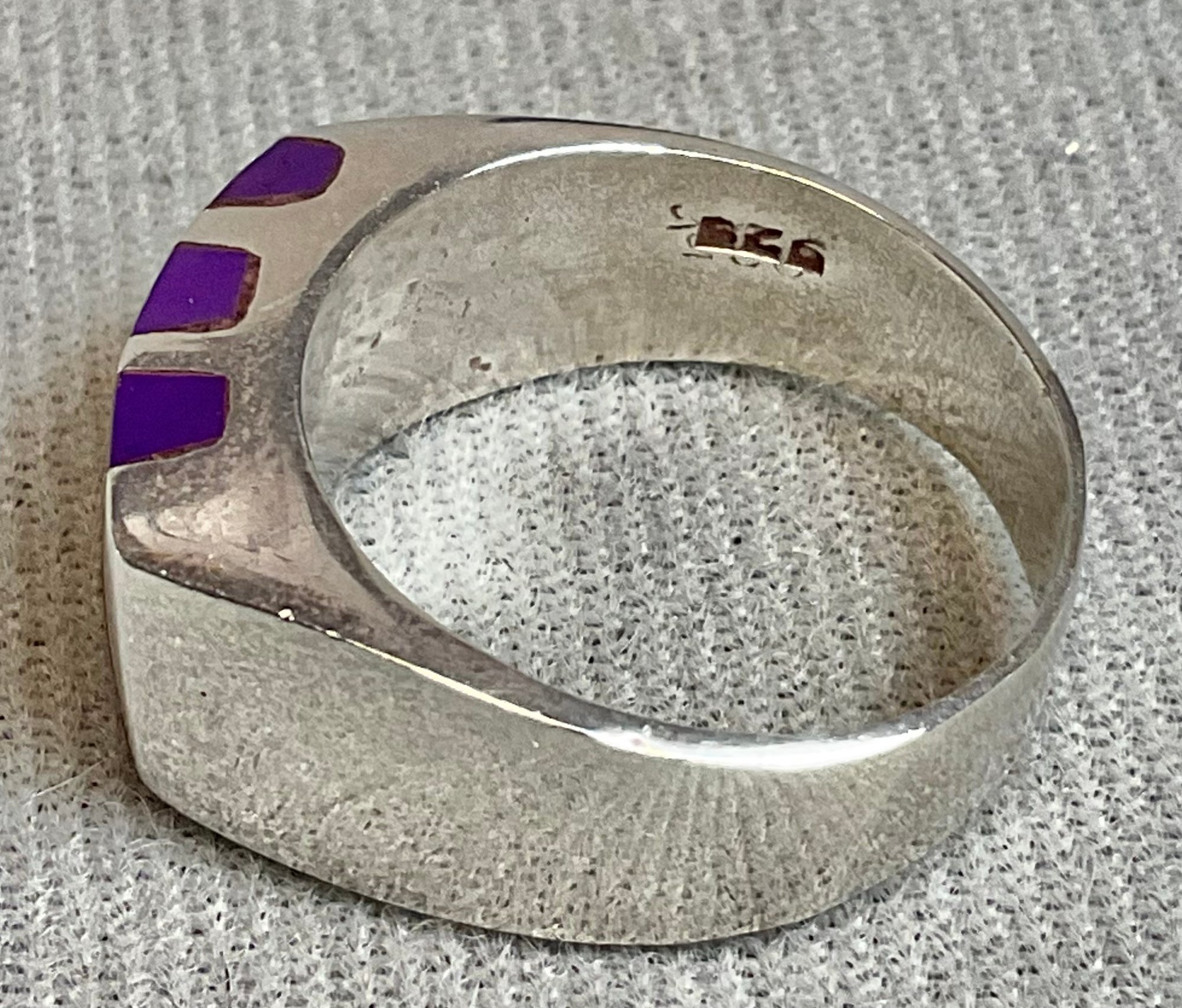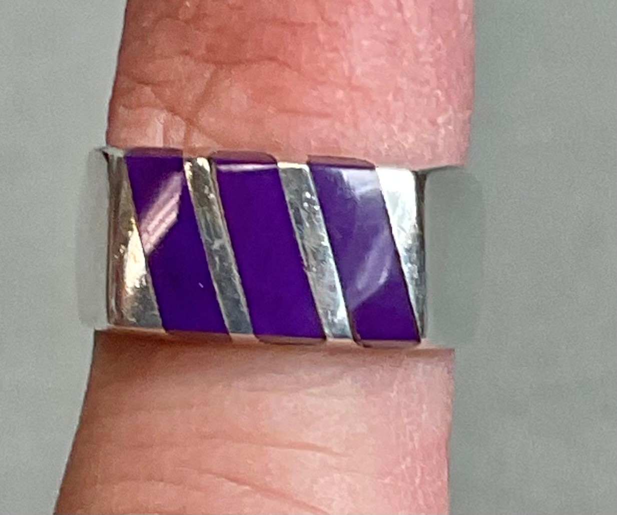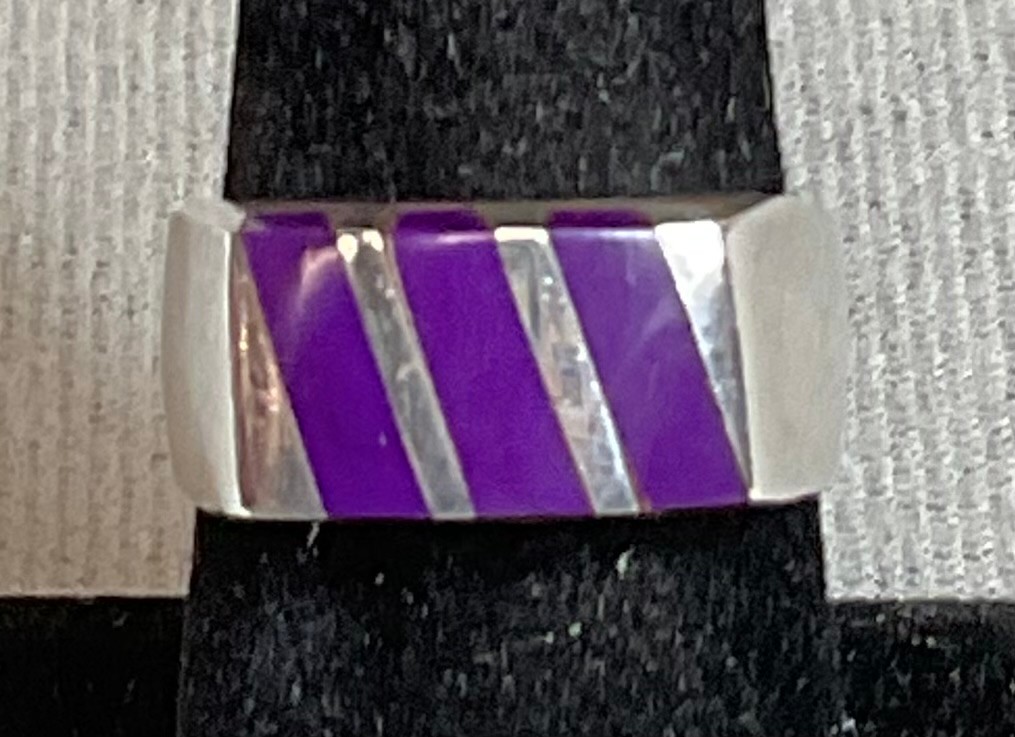 Sterling & Magenta Turquoise Ring - Mexico - size 8 - weighs 10 grams - good used condition