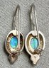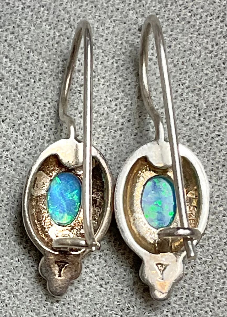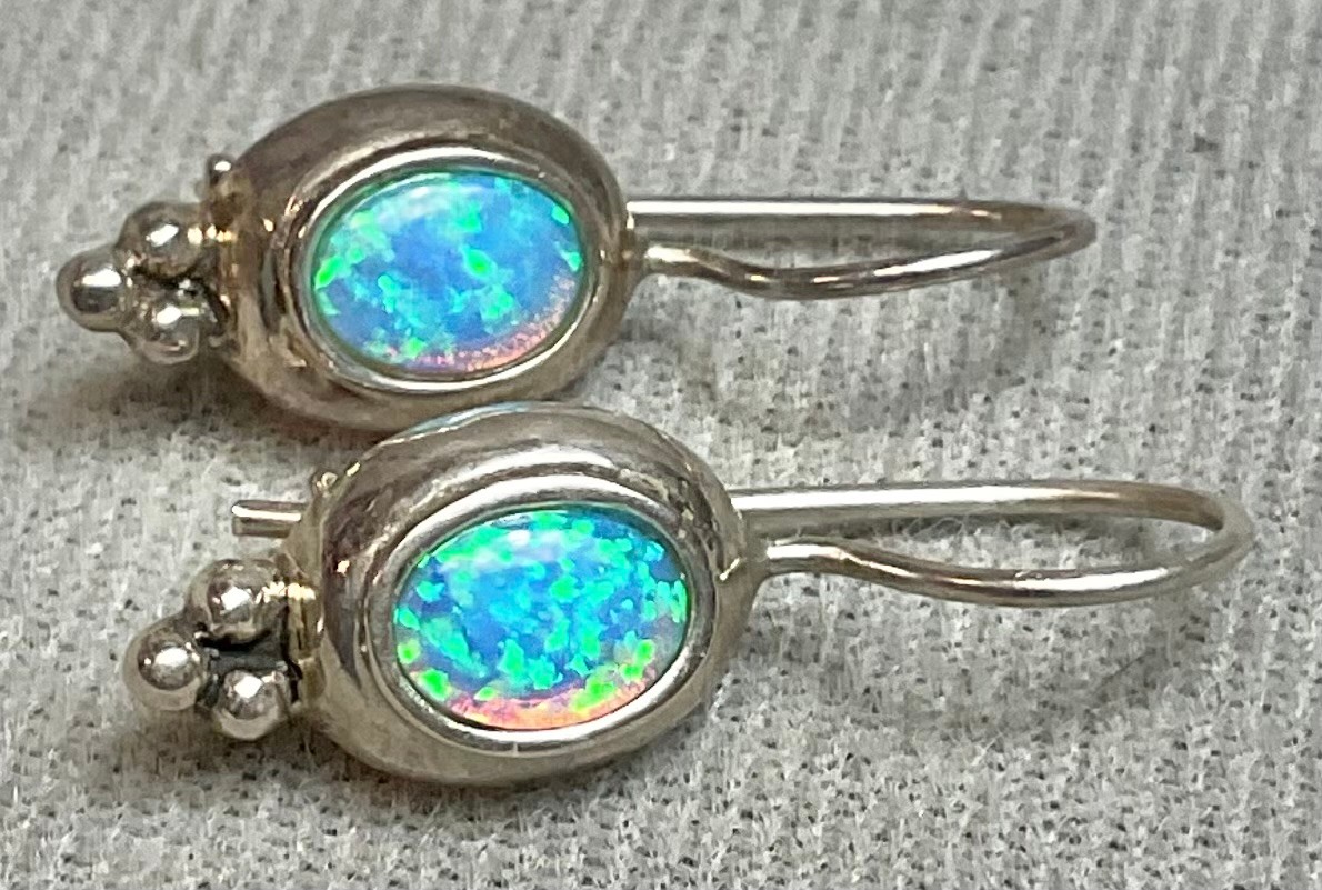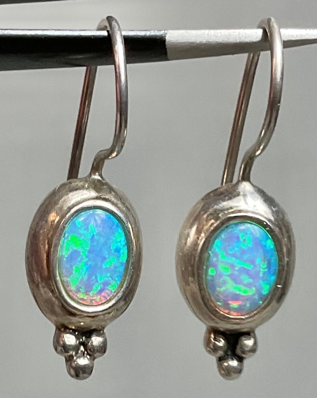 Sterling Opal Half Hoop Earrings - 1/2” - weighs 3.5 grams - good used condition